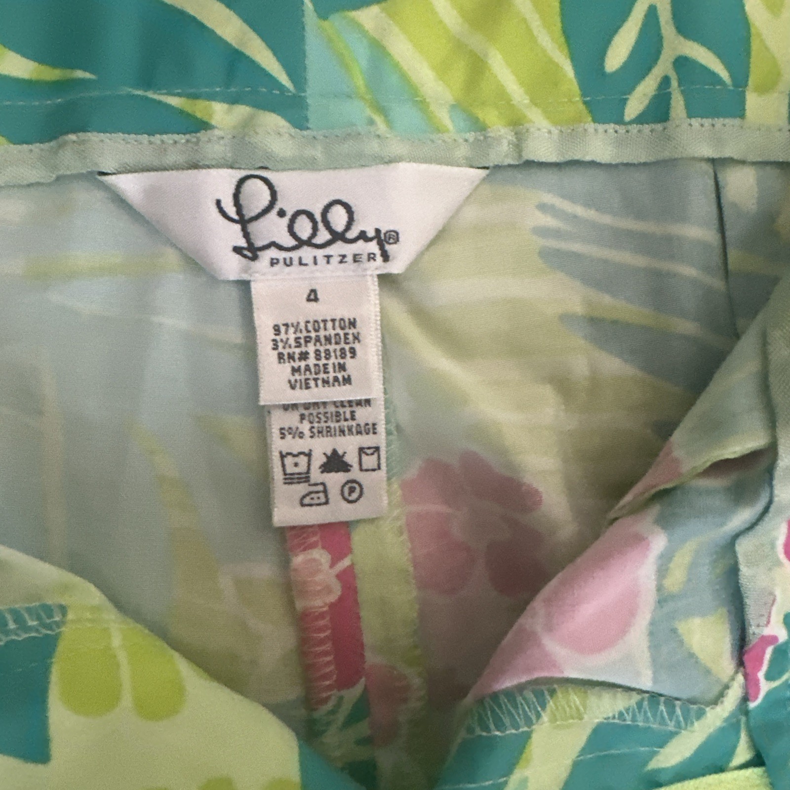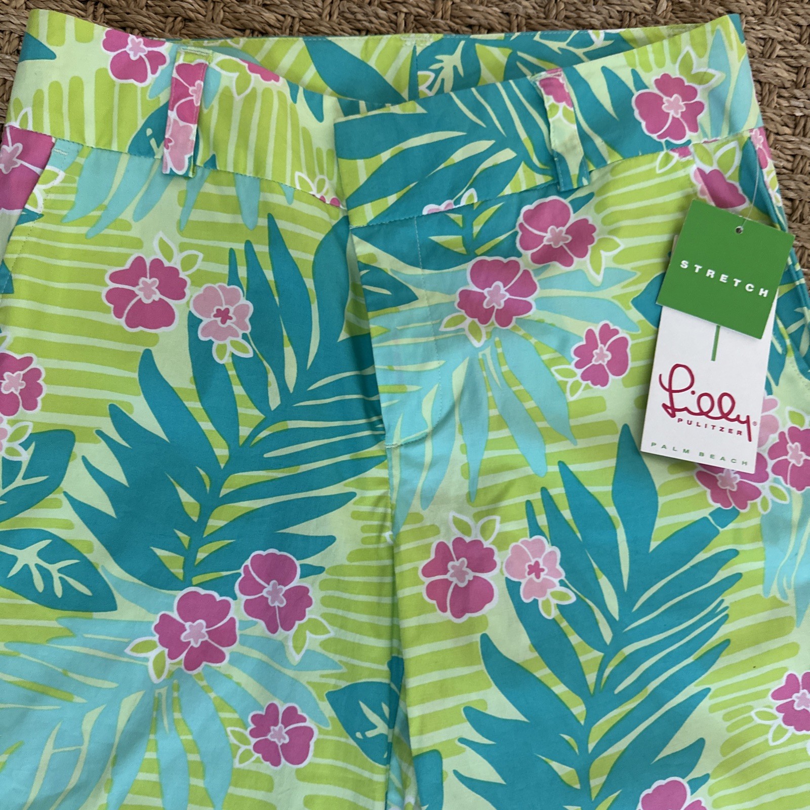 Vintage Lilly Pulitzer NWT Green Multicolor Cotton Wide Leg Floral Pant Sz 4