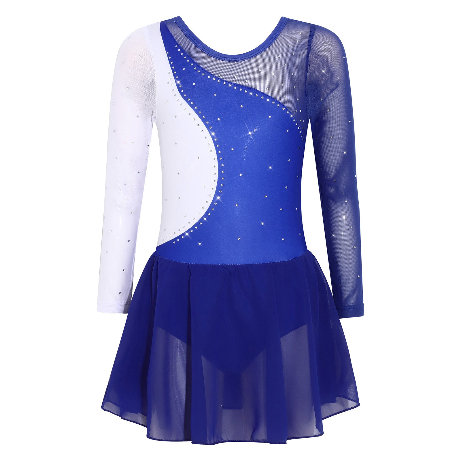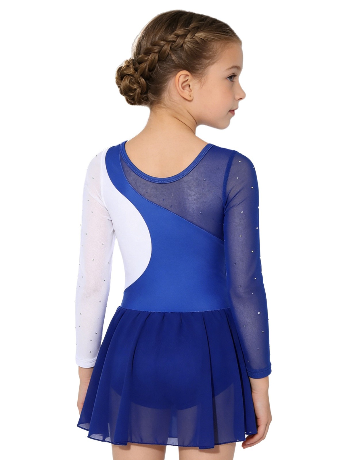 как выглядит Kids Girls Costume Stage Dress Color-blocked Dancewear Modern Long-sleeve Mesh фото