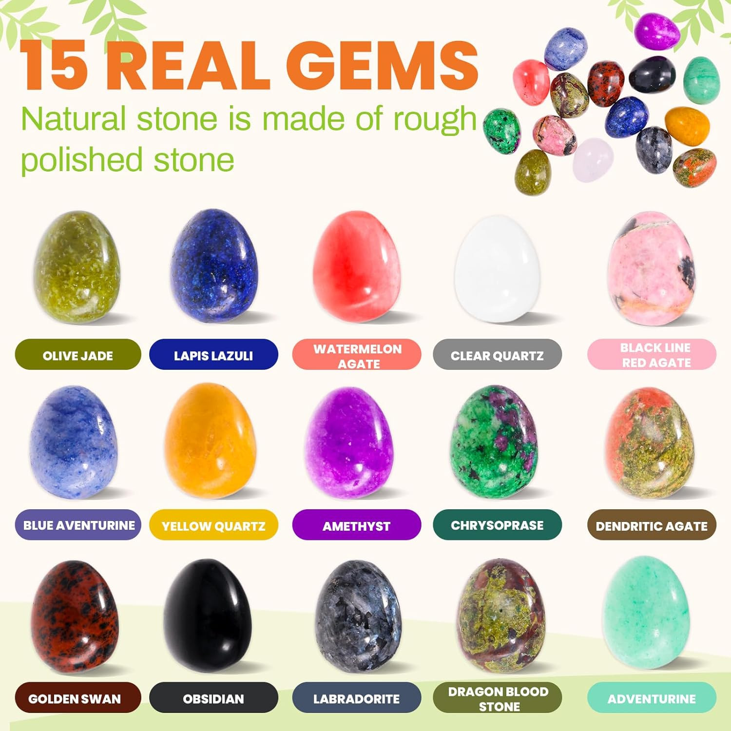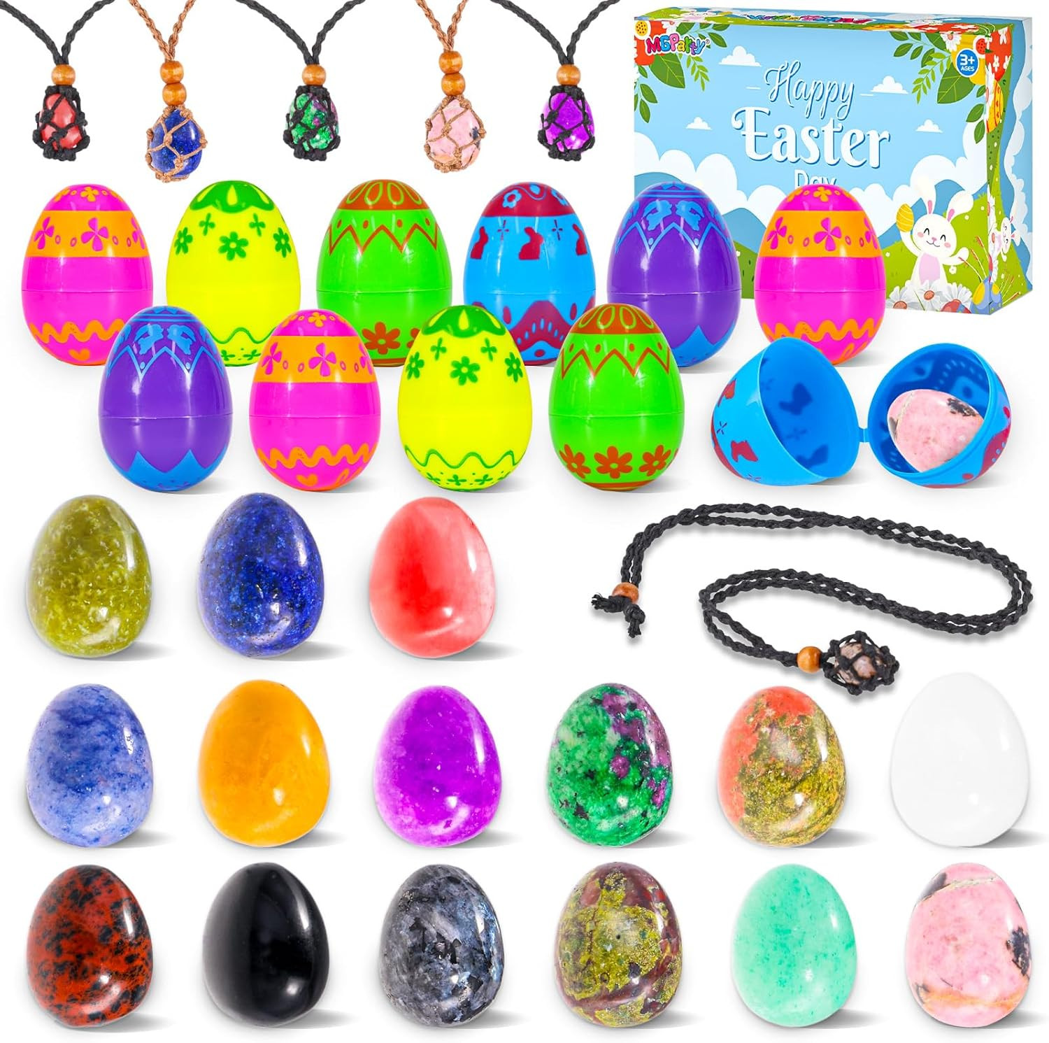 Mgparty 15 Pack Prefilled Easter Eggs with Gemstones,Filled Easter Eggs for Kids