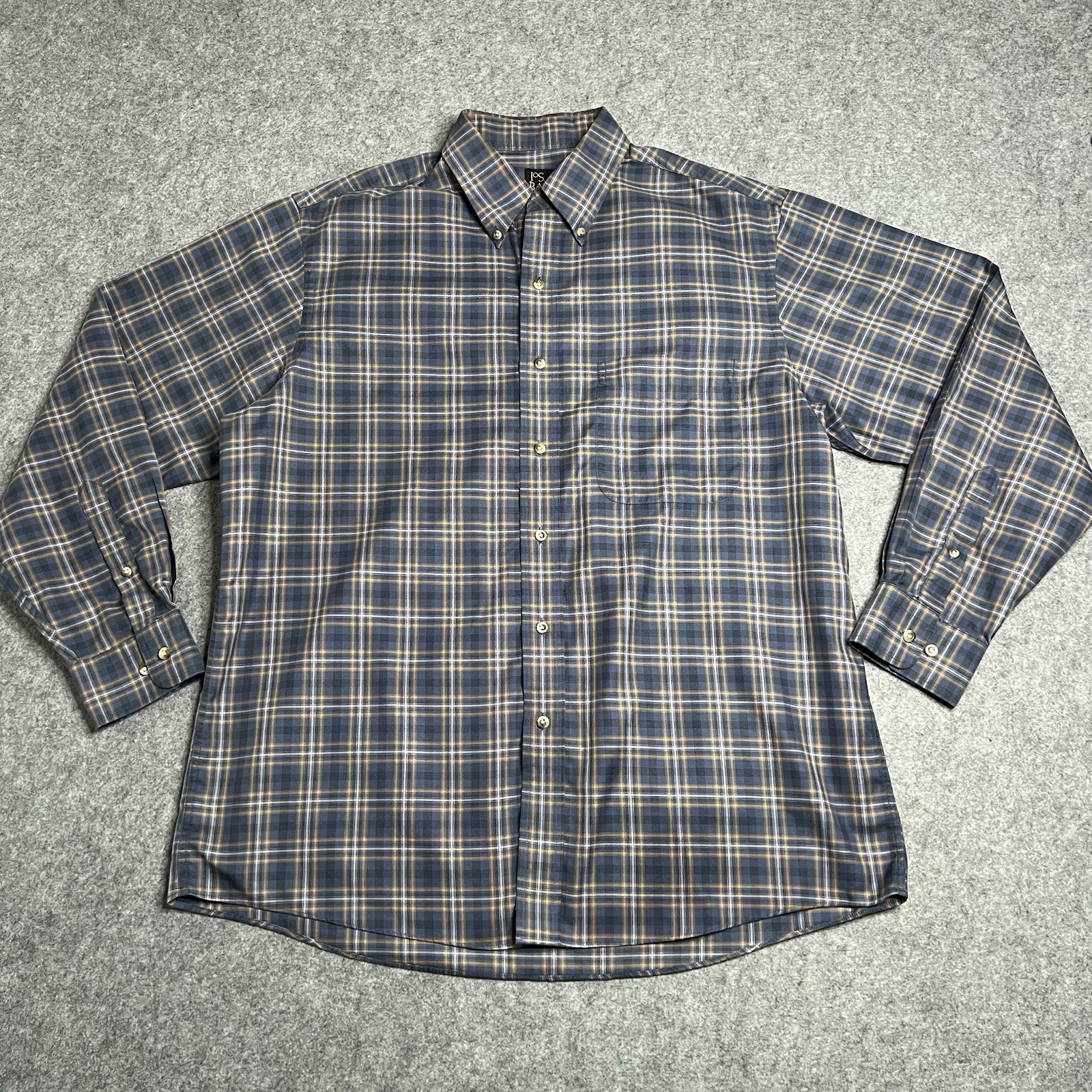как выглядит 3 Jos A Bank Mens Traveler Long Sleeve Button Up Plaid Shirts Blue Size L фото