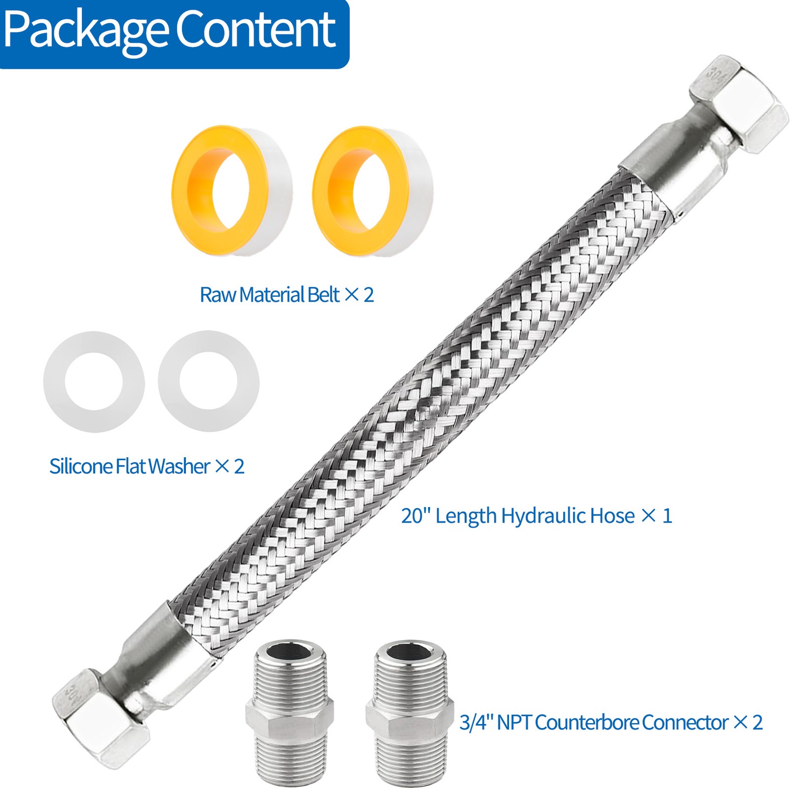Industrial Grade Compressor Jumper Hose, 3/4 NPT Male X 20 Length Hose 750 F