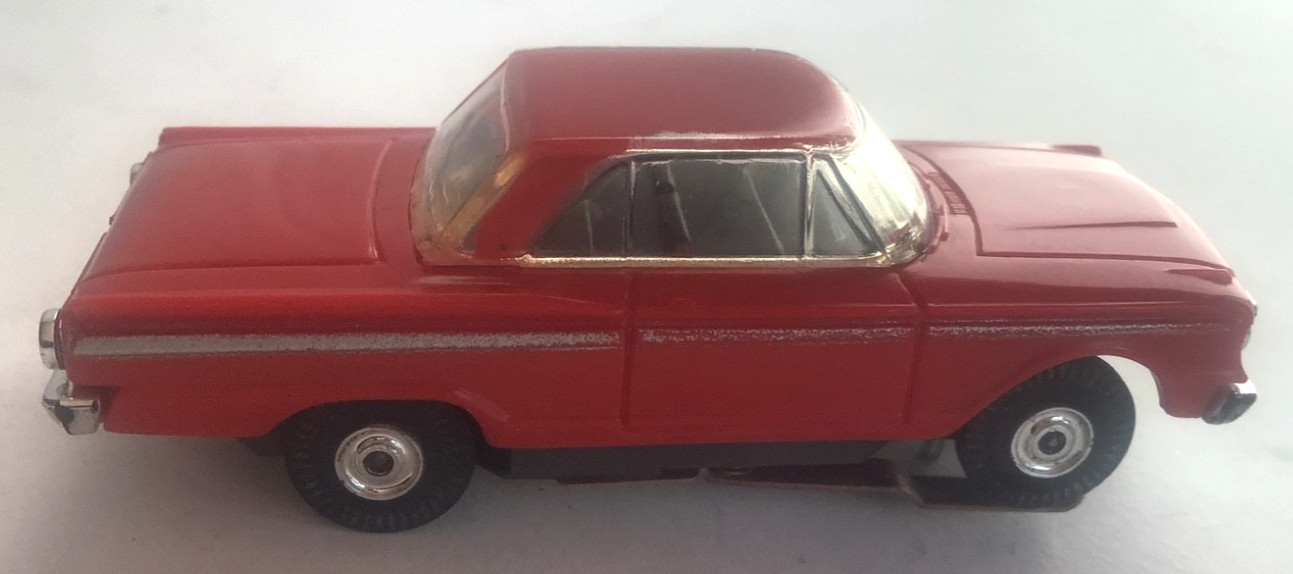 Aurora T-Jet 1353 Ford Fairlane Red/Red/Blk Solid Rivet HO Slot Car 1960s Vtg