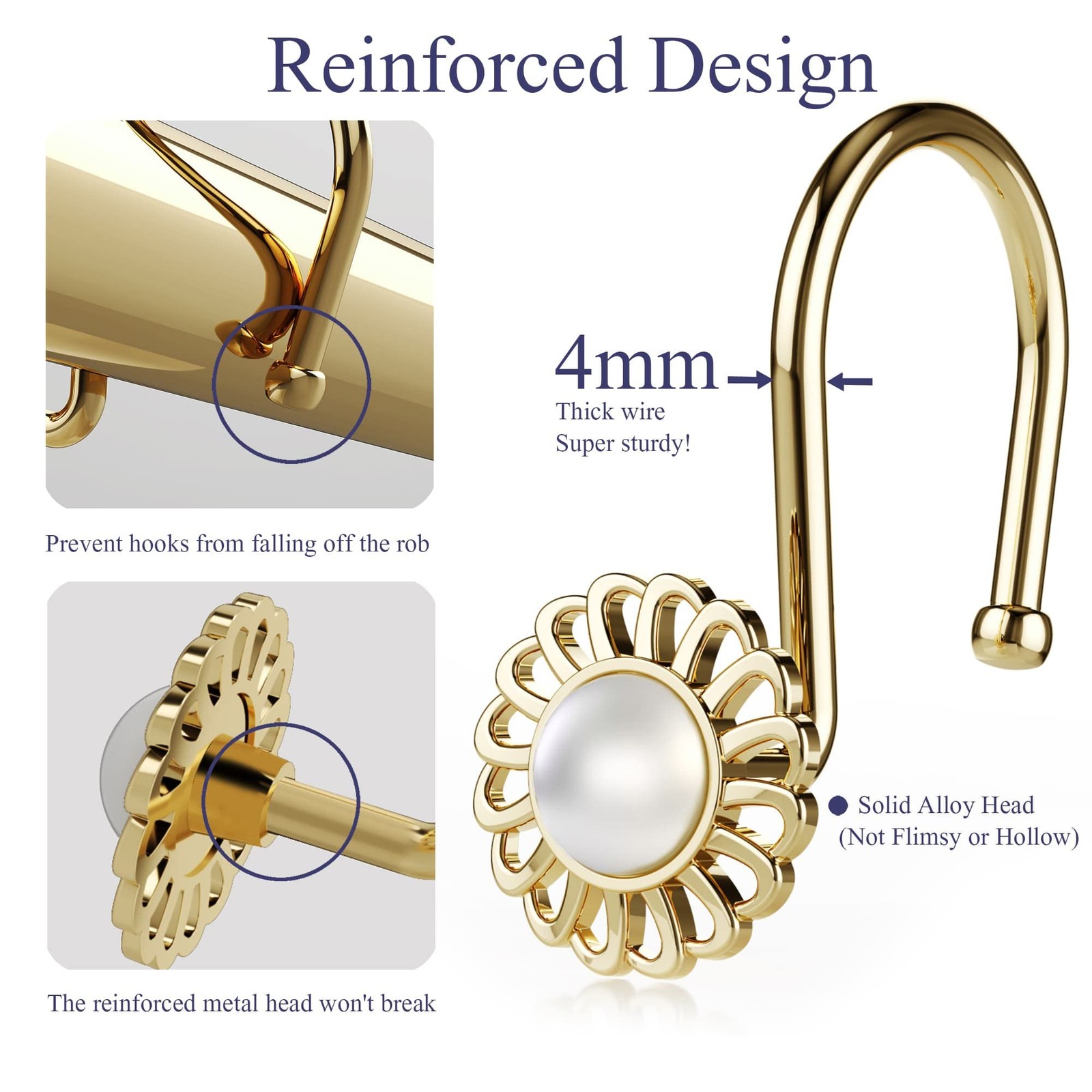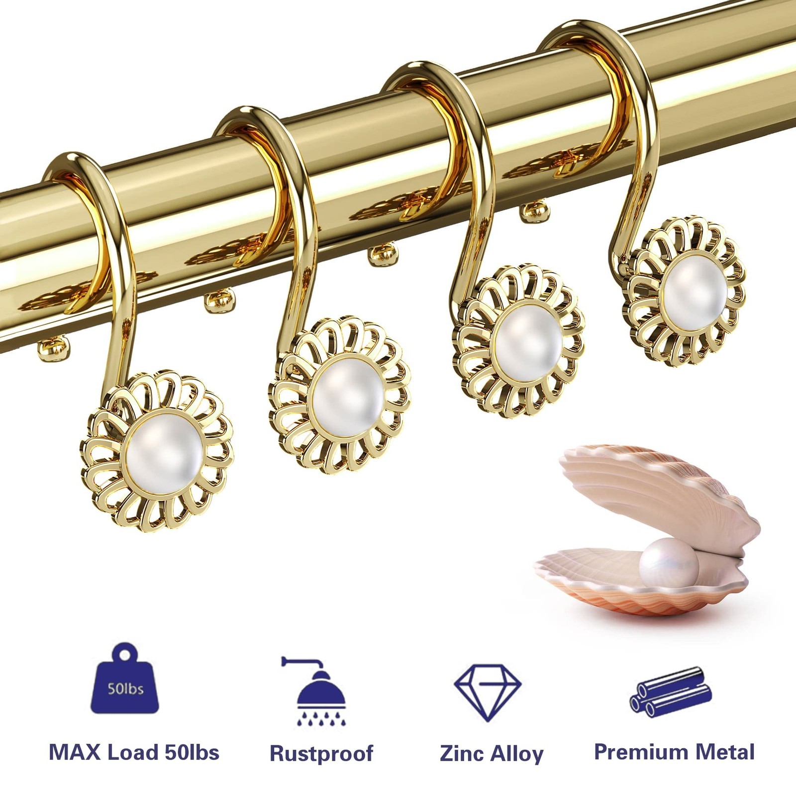 Gold Shower Curtain Hooks Rings, Decorative Shower Curtain Hangers, Heavy Dut...