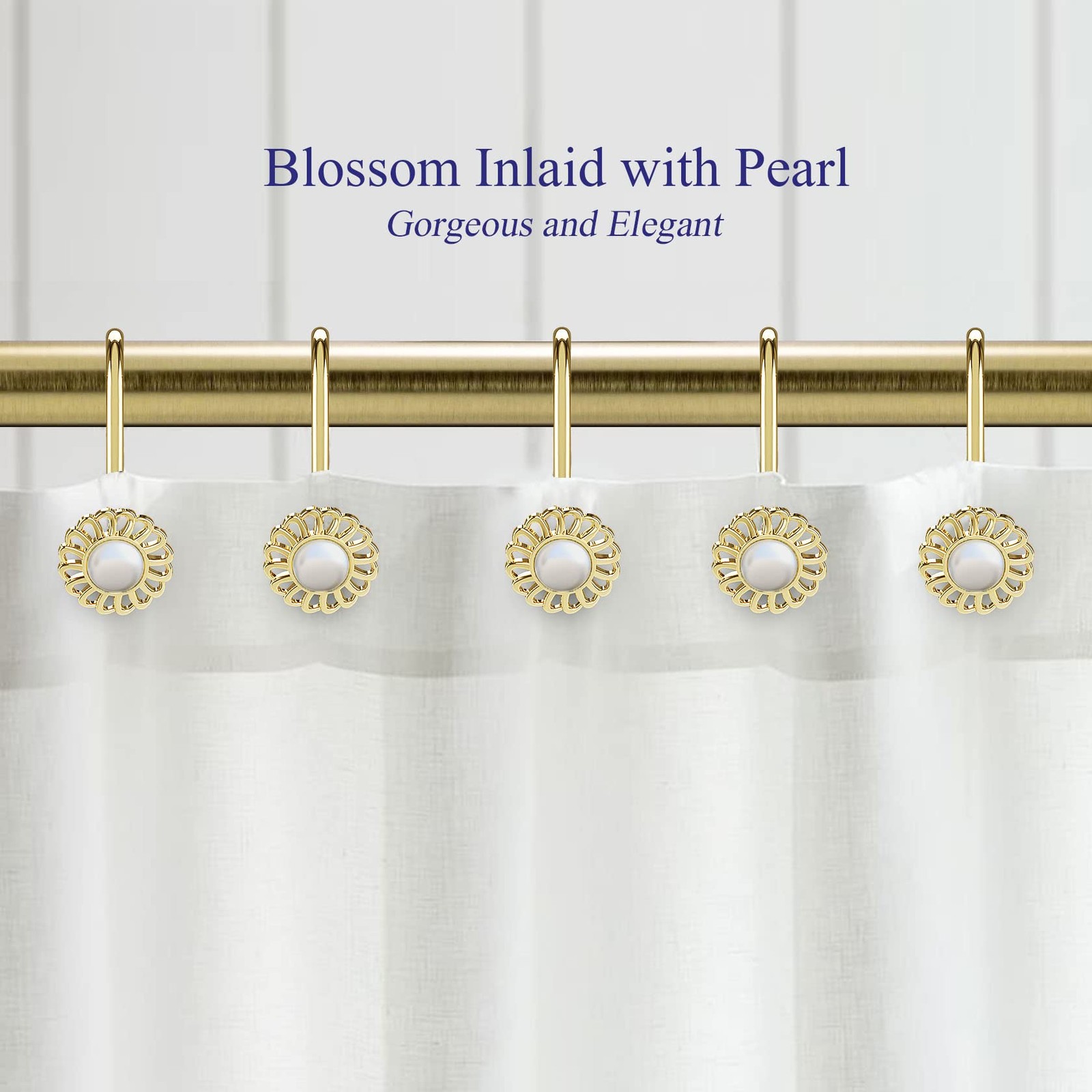 как выглядит Gold Shower Curtain Hooks Rings, Decorative Shower Curtain Hangers, Heavy Dut... фото