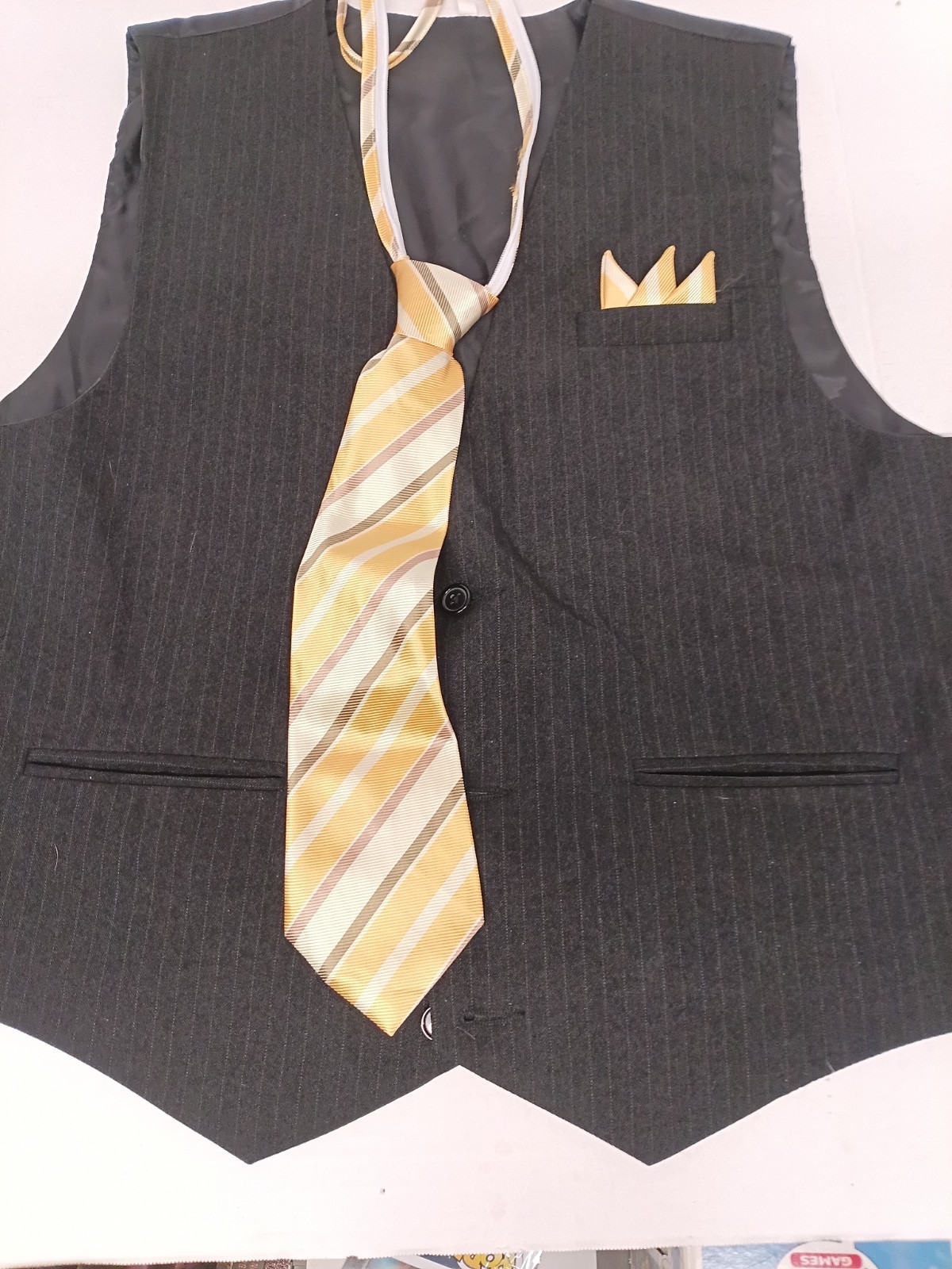как выглядит Rafael formal Vest black pinstriped with Tie Banana фото