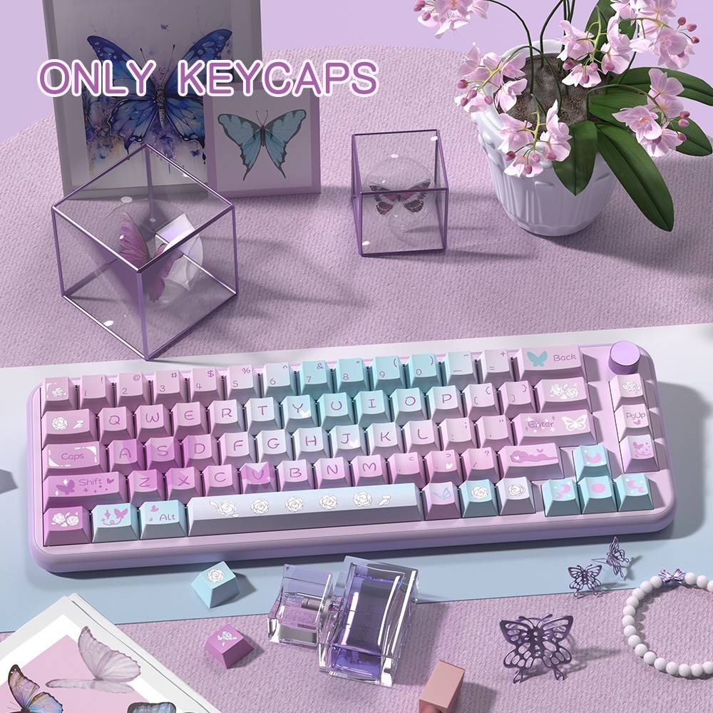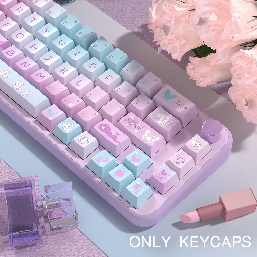 Pink Purple Gradient PBT Keycaps 138 Keys Cherry Profile Cute Keyboard MX