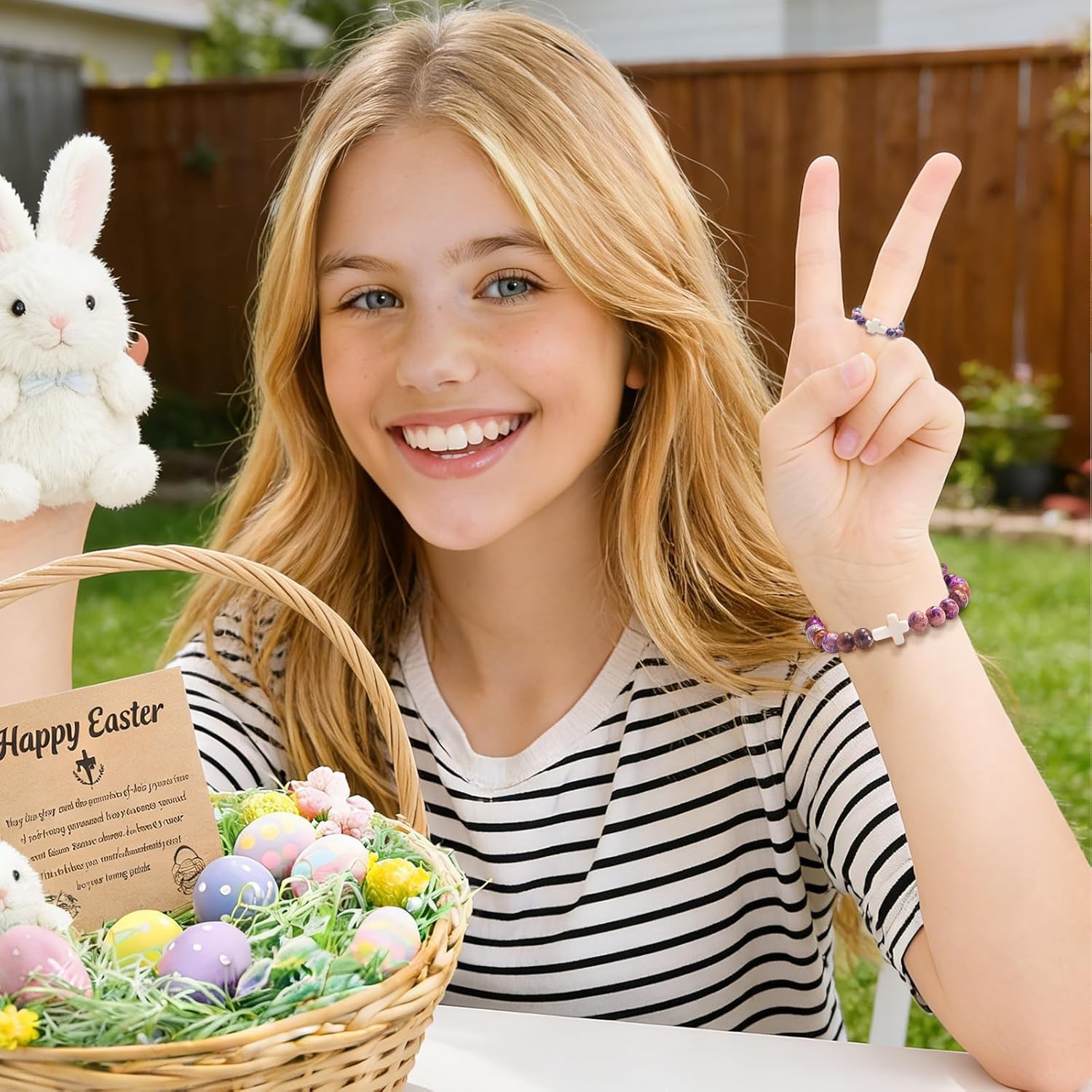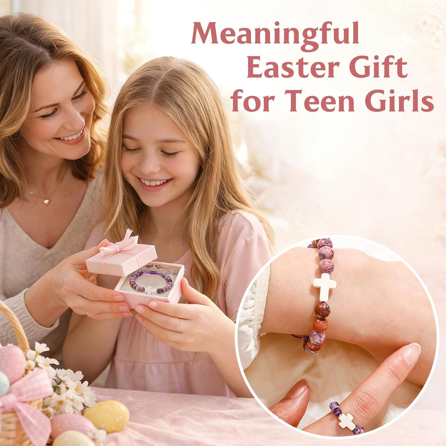 Easter Basket Stuffers, Cross Bracelet Ring Set Easter Gifts for Teens Girls B