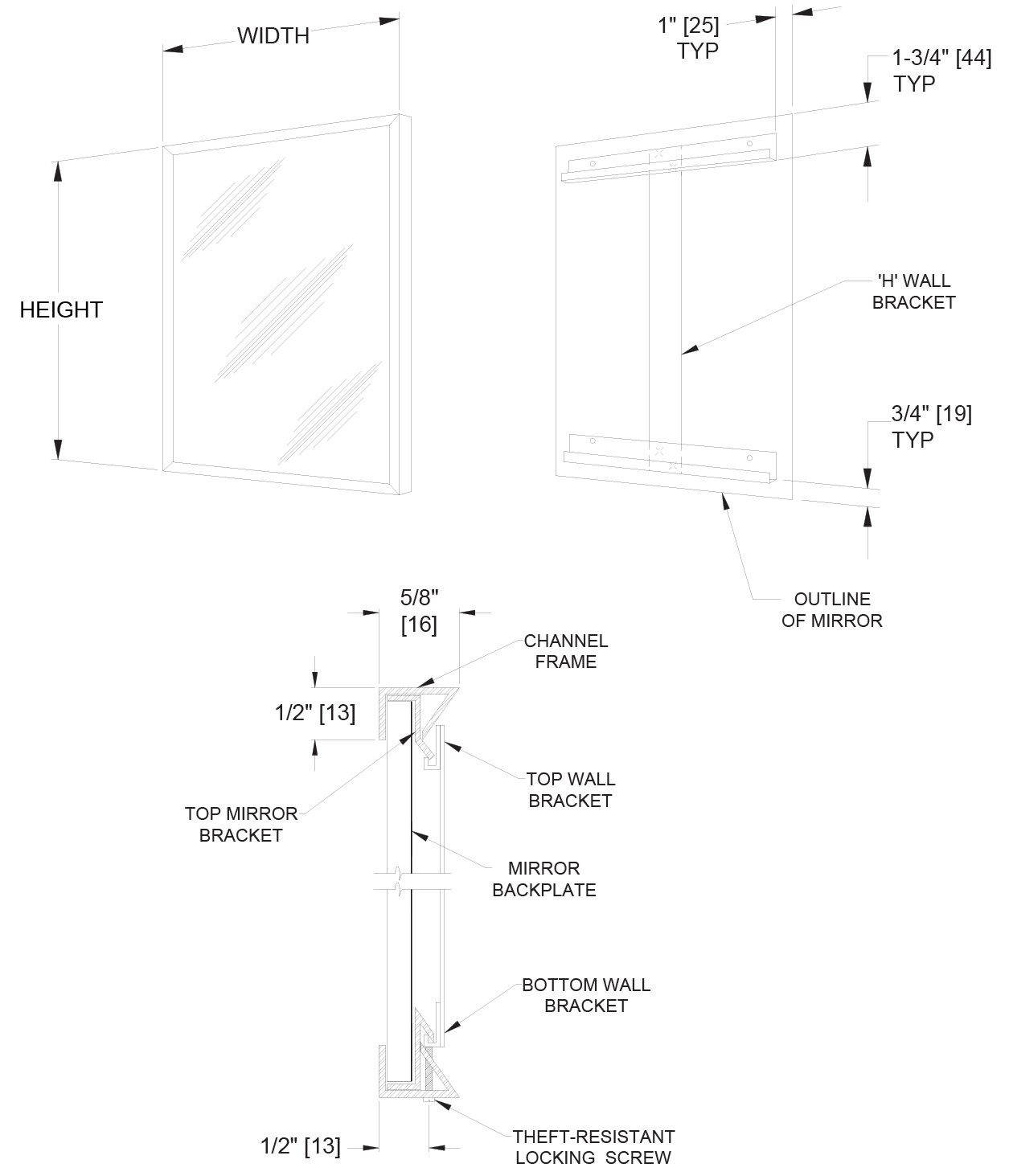 ASI Stainless Steel Chan-Lok Frame Commercial Glass Mirror 30x48 10-0620-3048