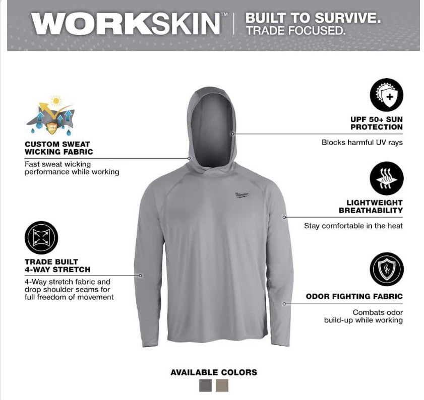 Milwaukee Gray XL Sweat Wicking Workskin Hoodie UPF 50 for Construction