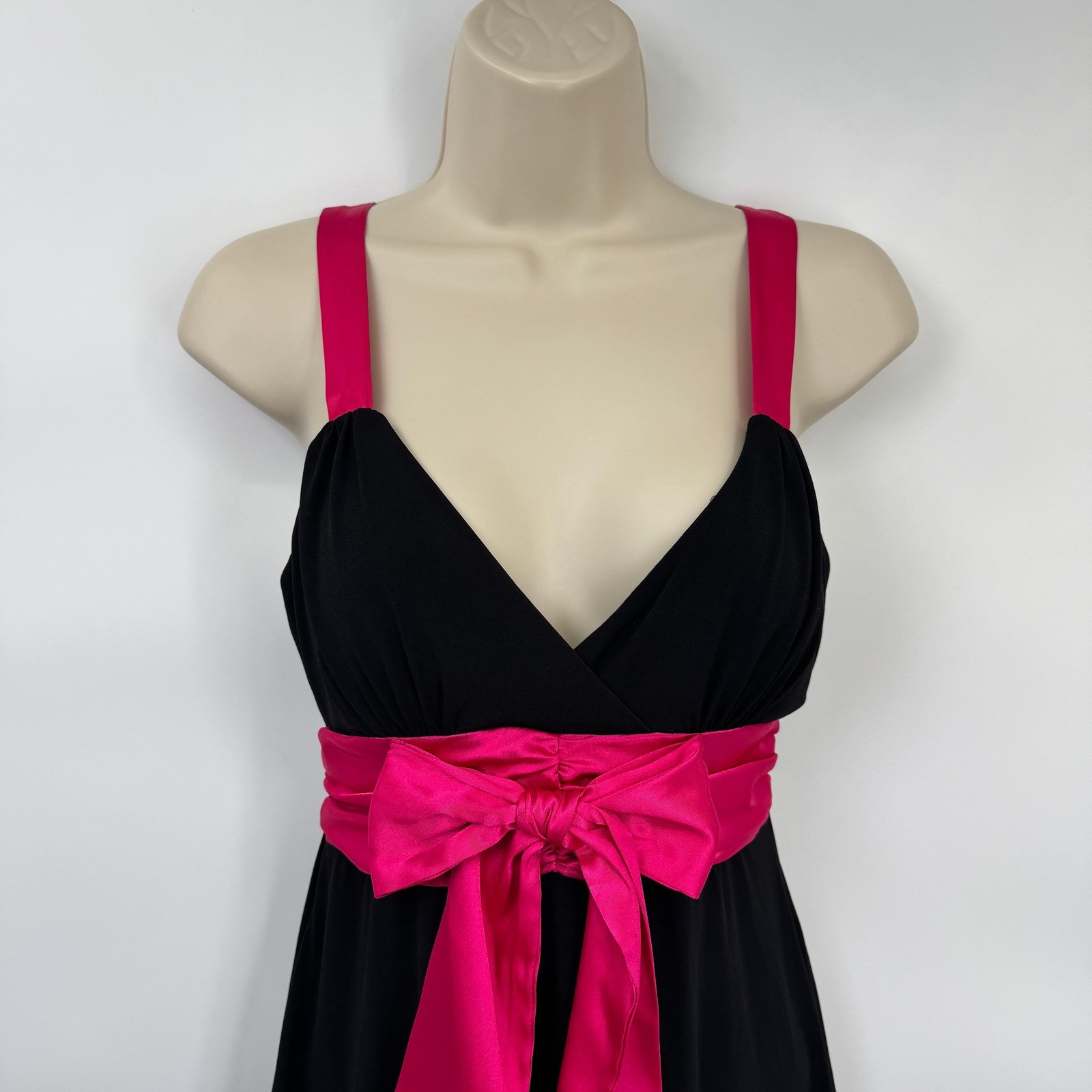 Vintage Y2K City Triangles Formal Dress Teens Large Black Pink Bow Lace Trim