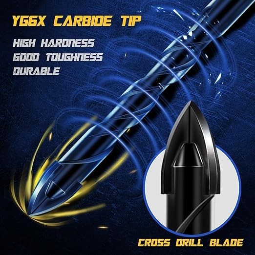 12PCS Masonry Drill Bit Set 1/8 to 1/2 inch Glass Tile Brick Cement Wood Plastic
