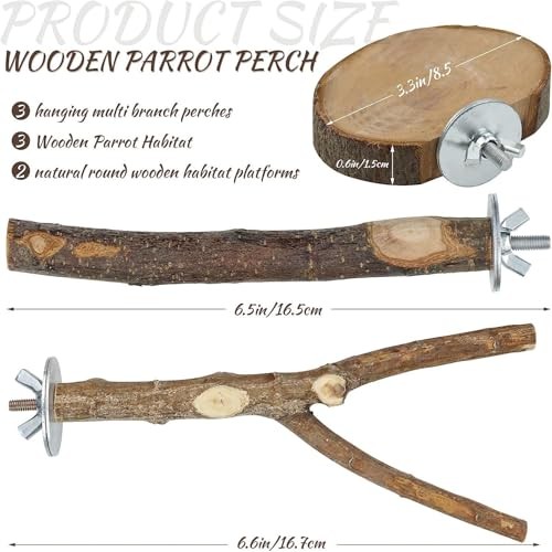 8-Piece Set Natural Wood Bird Perches - Wooden Parrot Stand with Fork Toys,