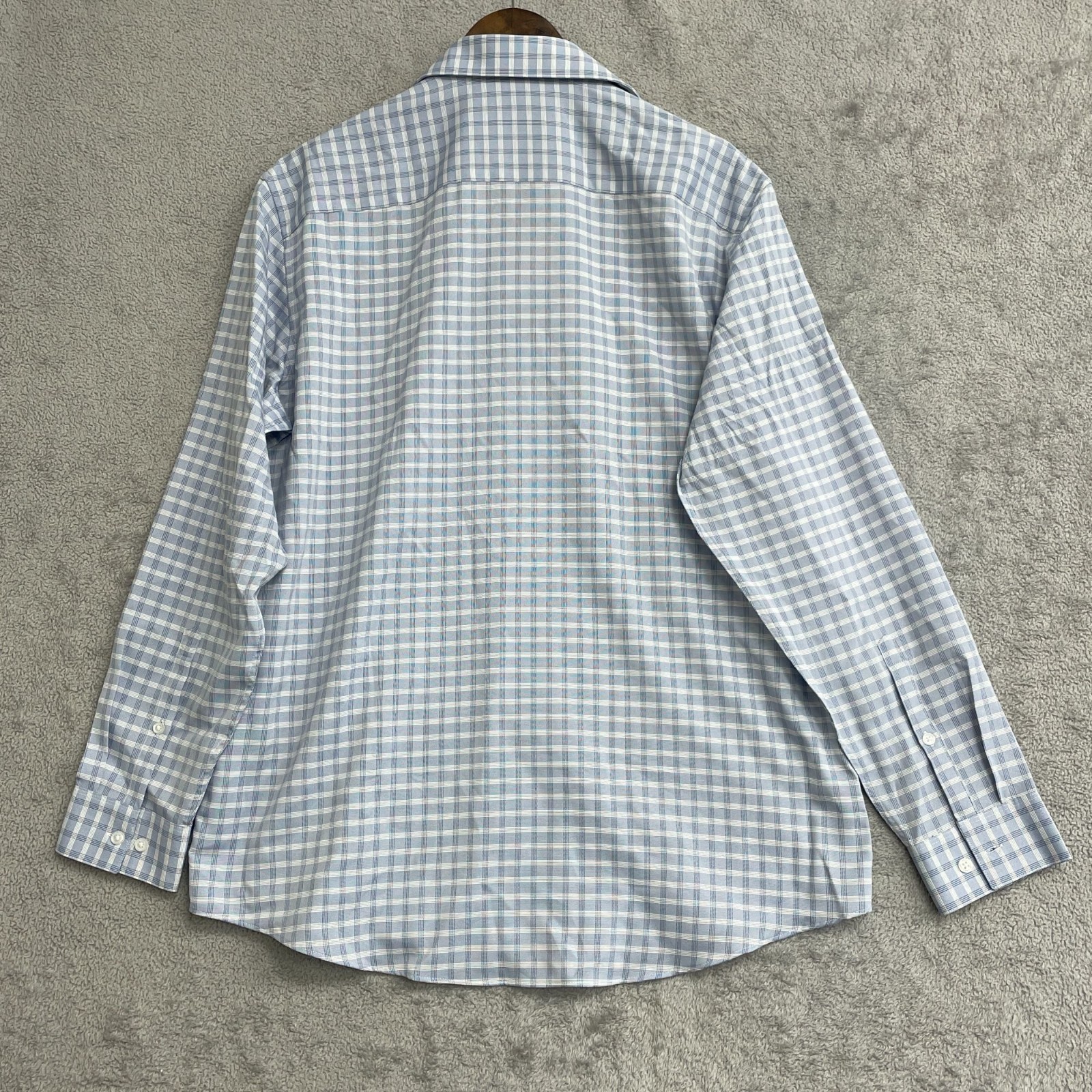 как выглядит NEW Kenneth Cole Reaction Mens L Regular Performance Blue Dress Shirt Plaid фото