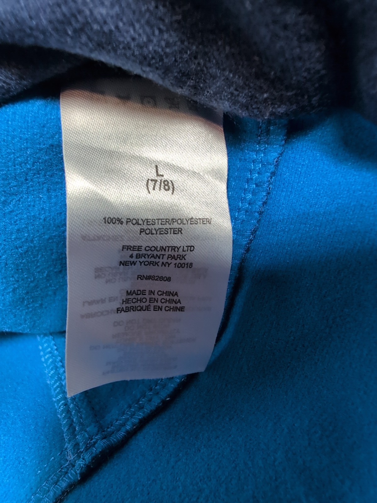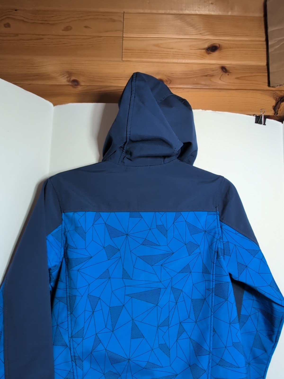 как выглядит Free Country Youth L 7/8 Hooded Jacket Blue Geometric Blue Fleece Lined Coat фото