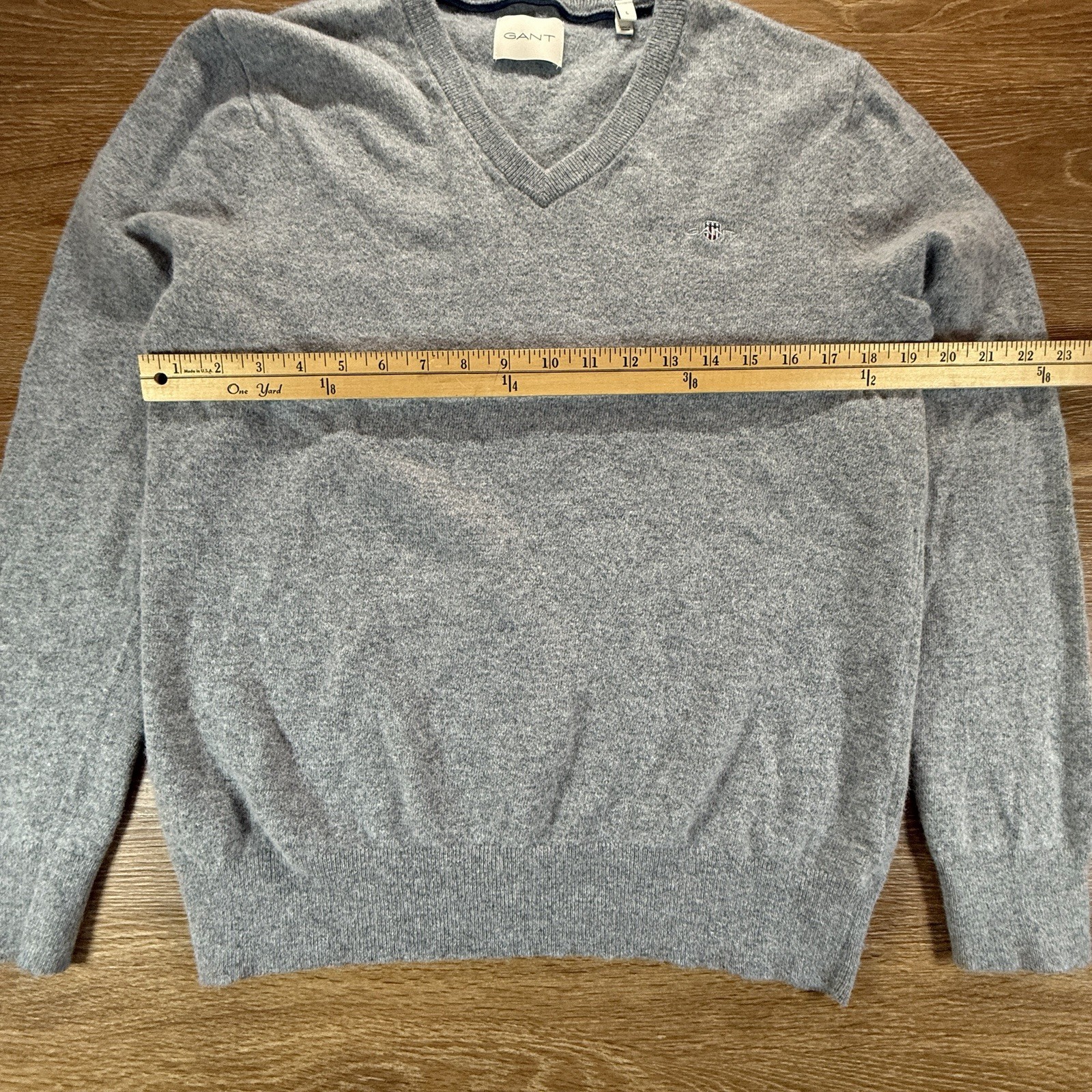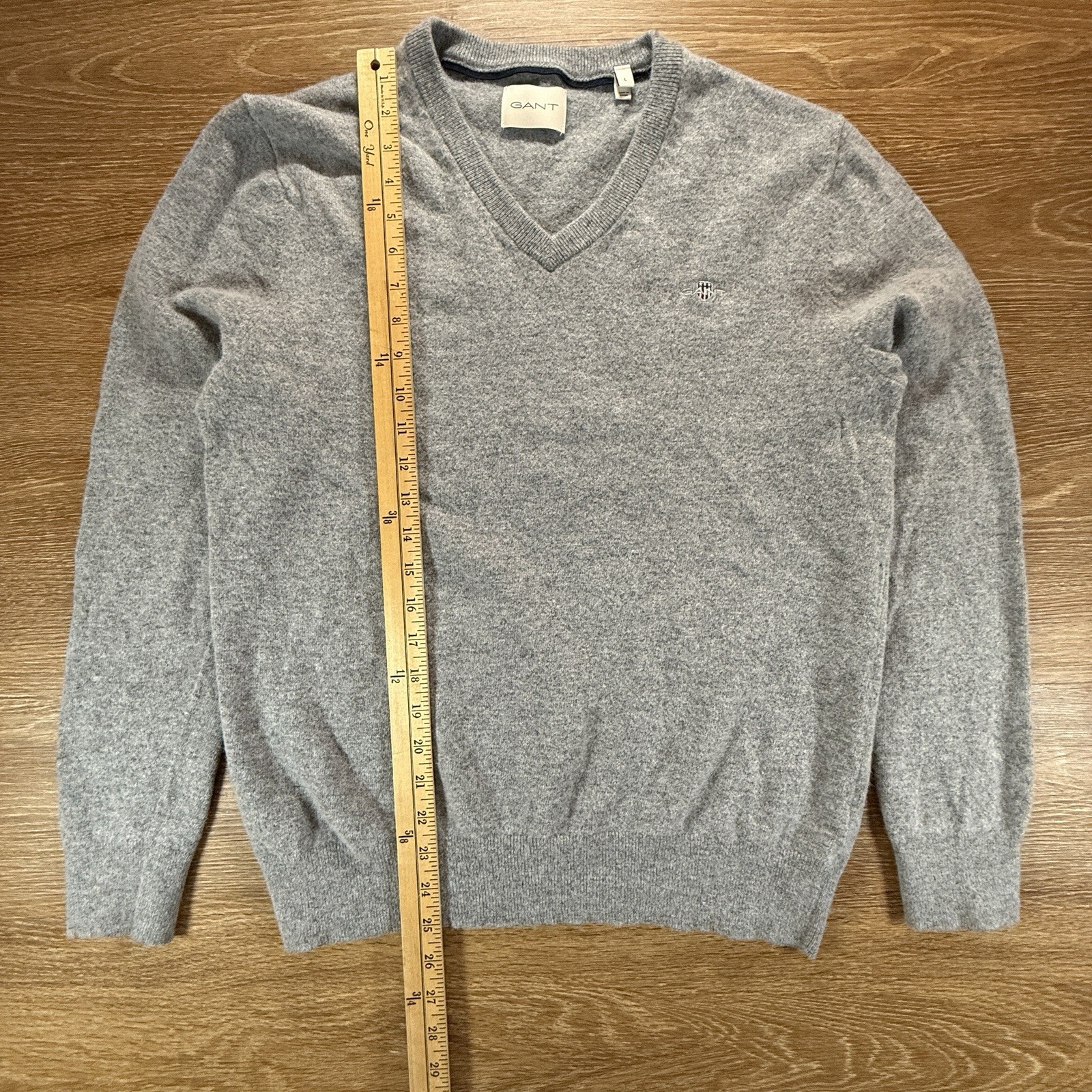 GANT Sweater Men s L Gray V Neck Lambswool Blend Classic Logo Knit Casual Preppy