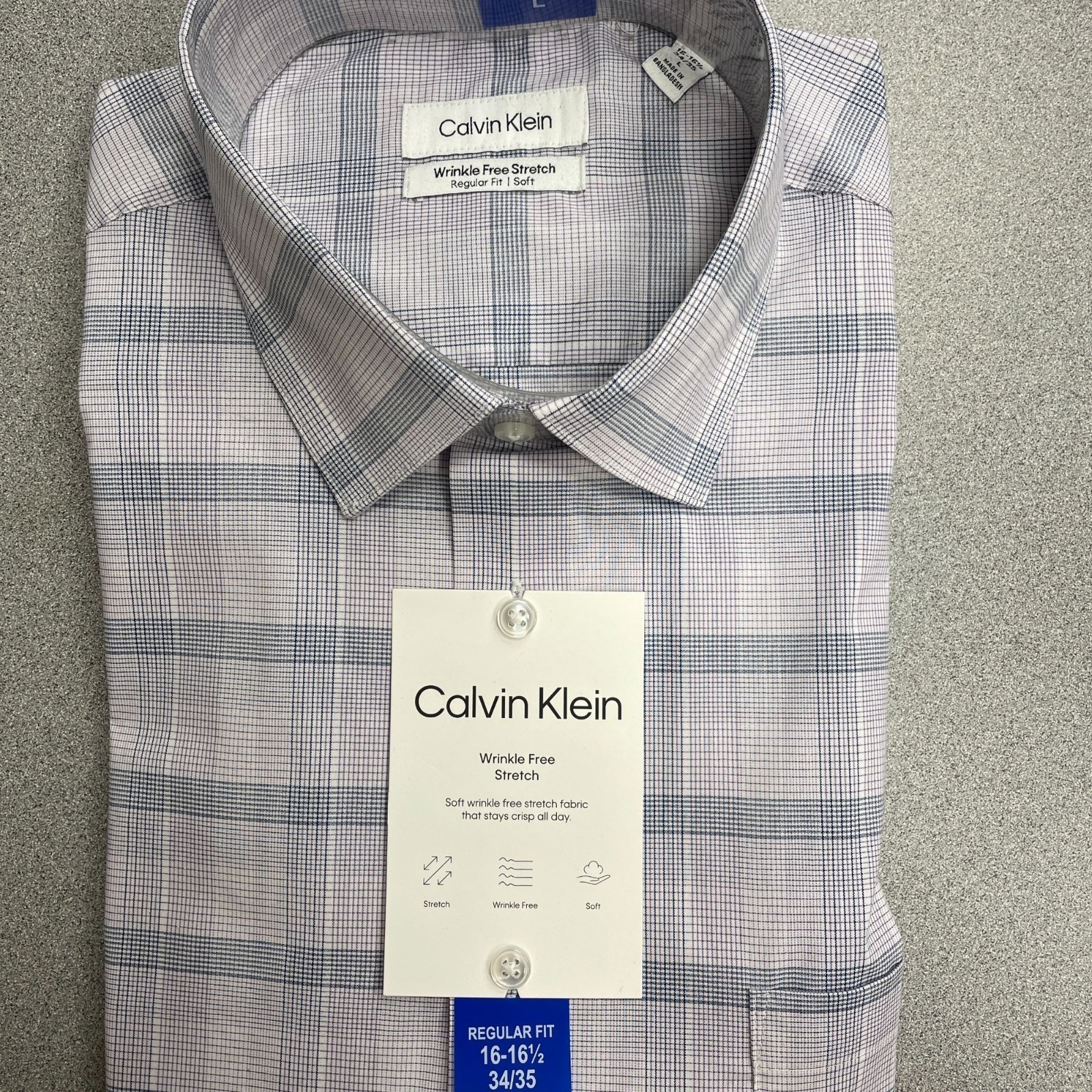 Calvin Klein Men's L Wrinkle Free Stretch Dress Shirt Regular Fit Plaid N0180