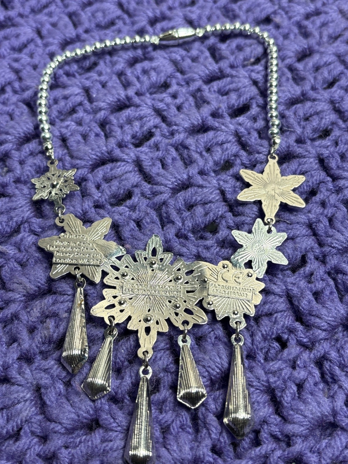 как выглядит 2023 Disney Parks Frozen Elsa Necklace Silvertone Blue Snowflakes AB Rhinestones фото