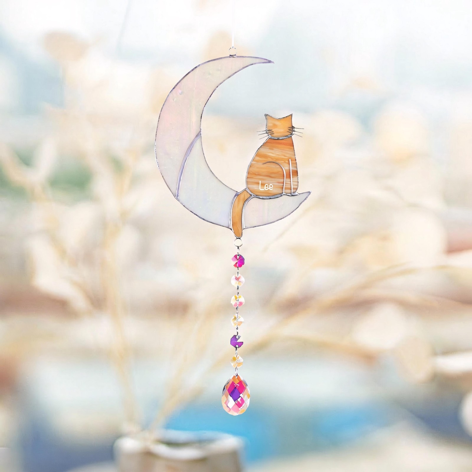 Custom Cat Memorial Suncatcher Crystal Cat on Moon Loss of Pet Sympathy Gift
