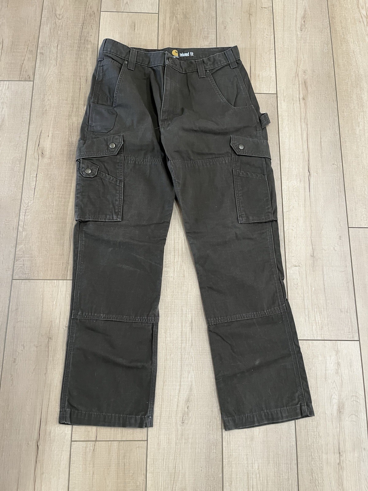 как выглядит Carhartt Black Mens Relaxed Fit Work Utility Pants with Cargo Pockets for Men фото