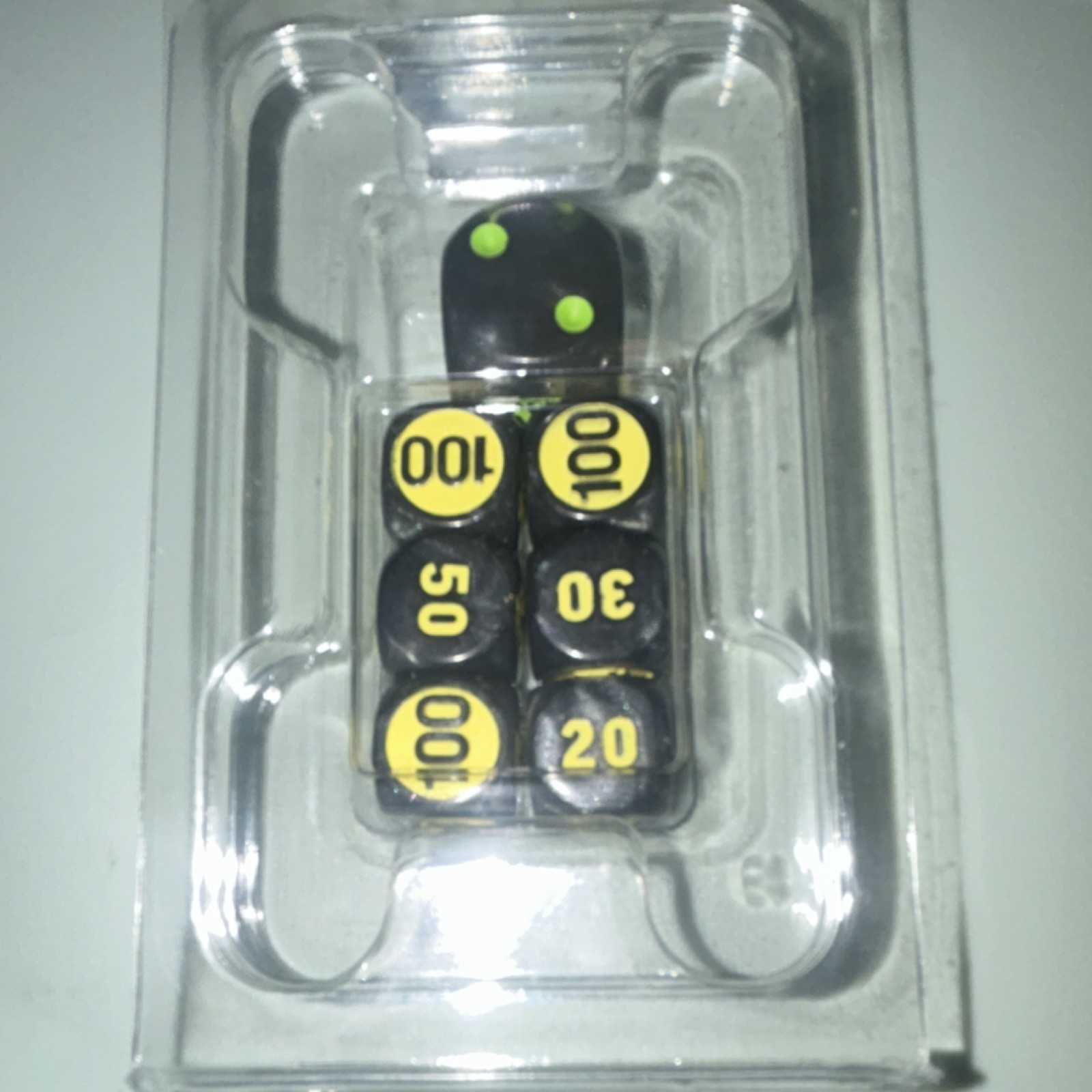 как выглядит 6-Piece Black Yellow Green D6 Dice Set with Numbers and Dots for CCG фото