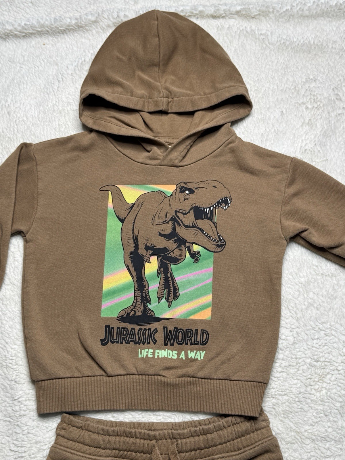 H M Jurassic World Tyrannosaurus Rex 2-Piece Hoodie Shorts Set 3T Brown