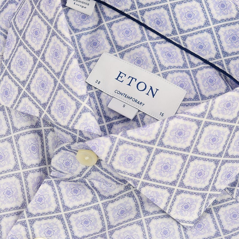 как выглядит ETON Blue Medallion CONTEMPORARY Spread Collar Cotton Dress Shirt 15 NEW фото