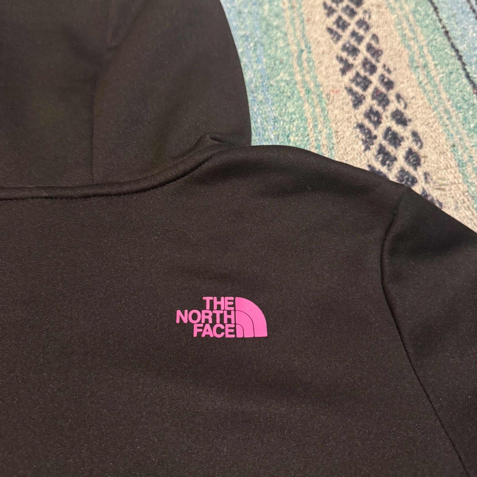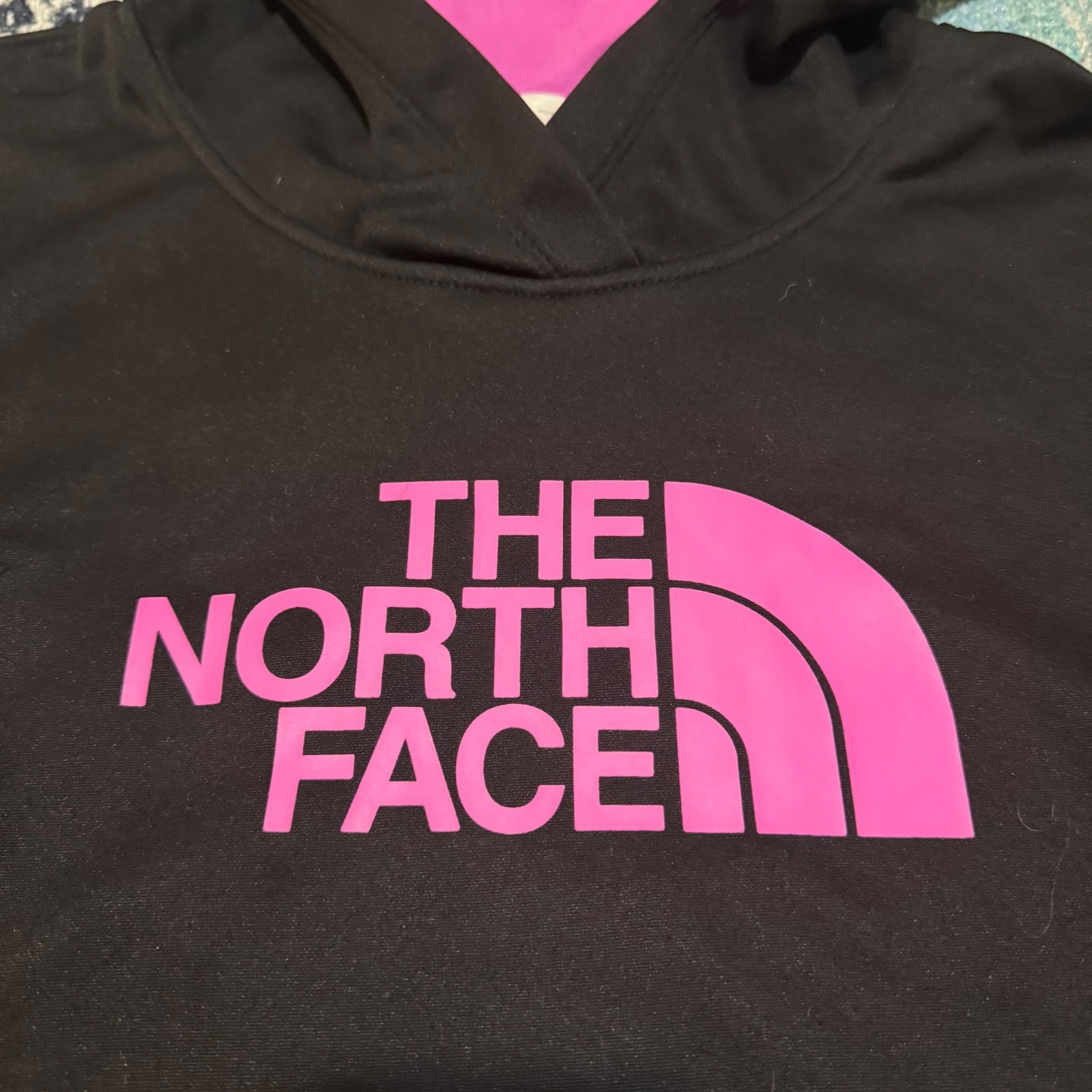 как выглядит The North Face Womens Pink Logo Hoodie Black Pullover Sweatshirt Size Large фото