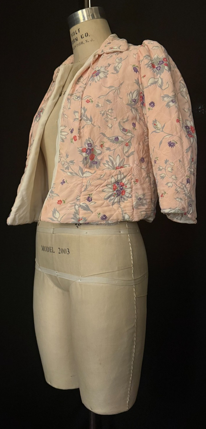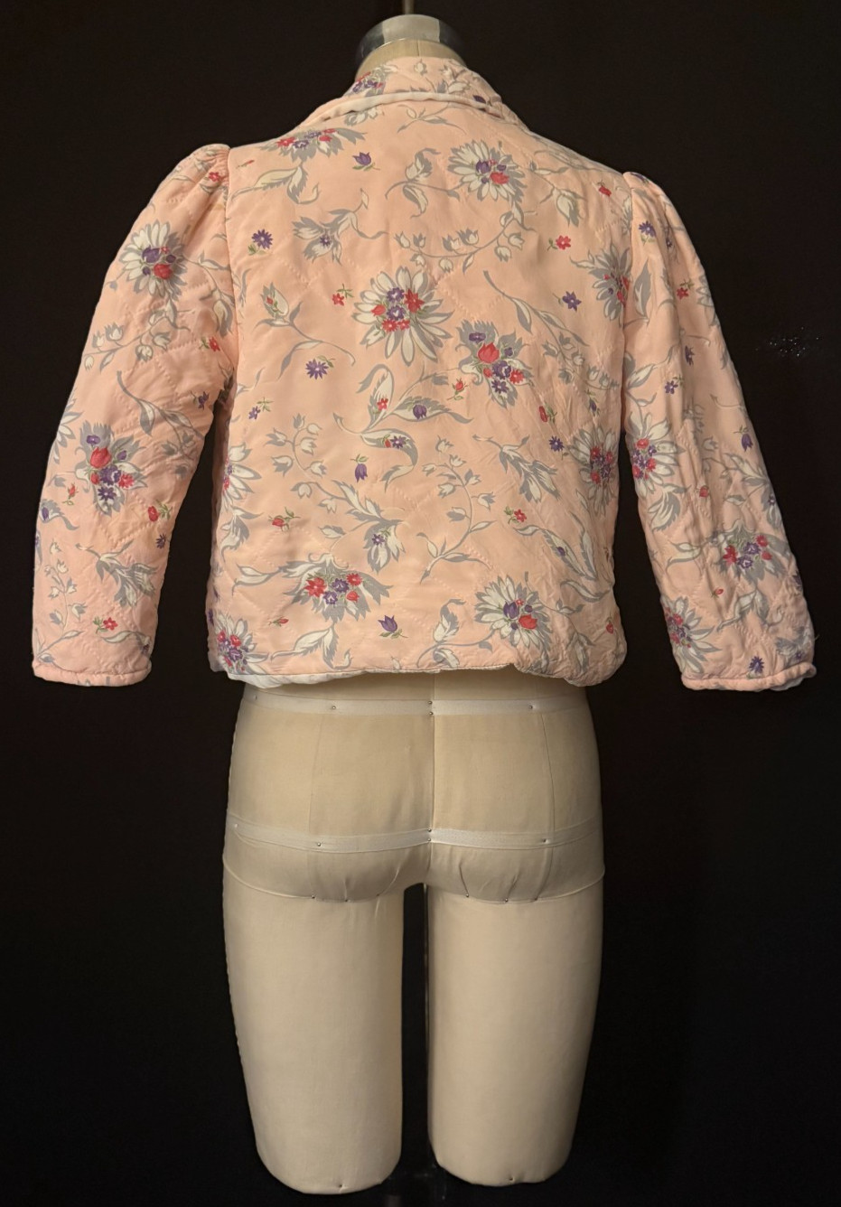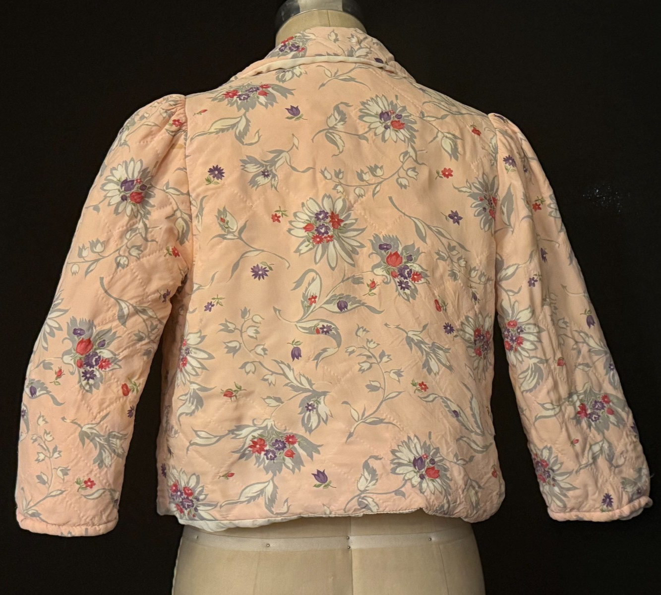 Vtg 1940s /50s QUILTED RAYON, BED JACKET, ALL OVER FLORAL PRINT, CUTE