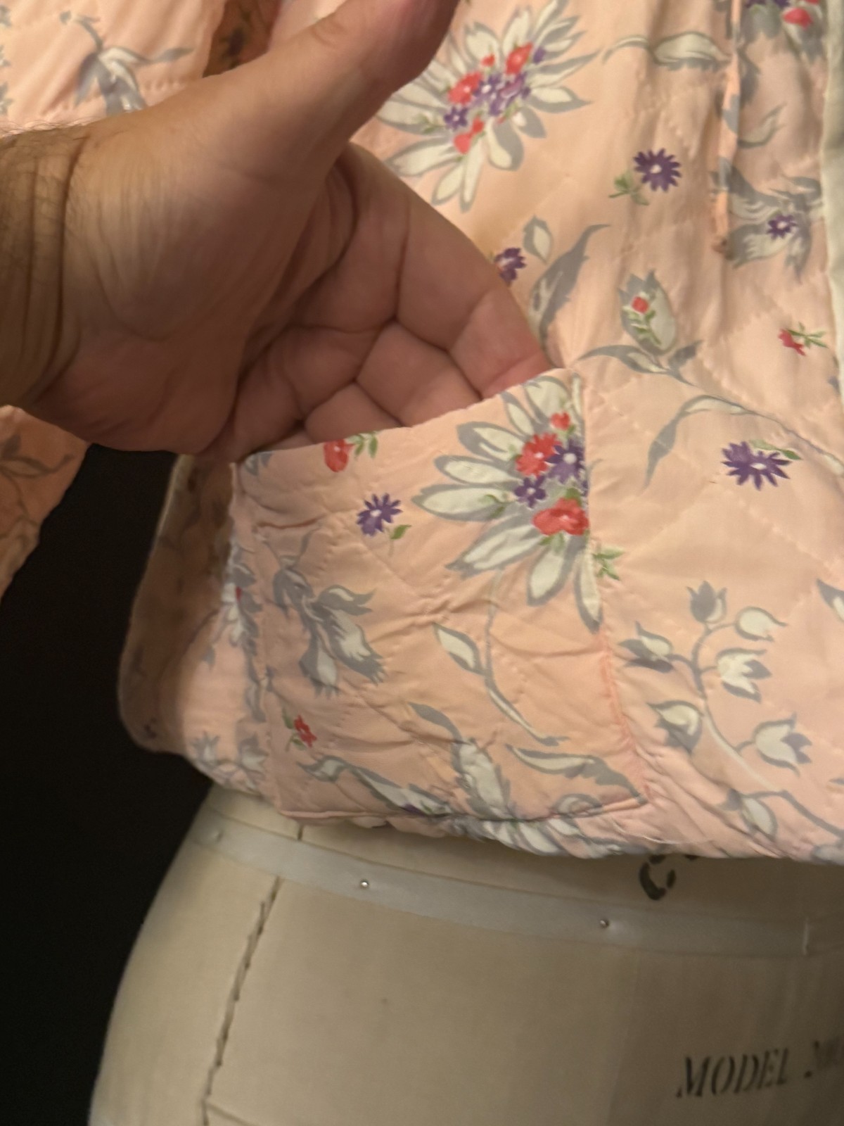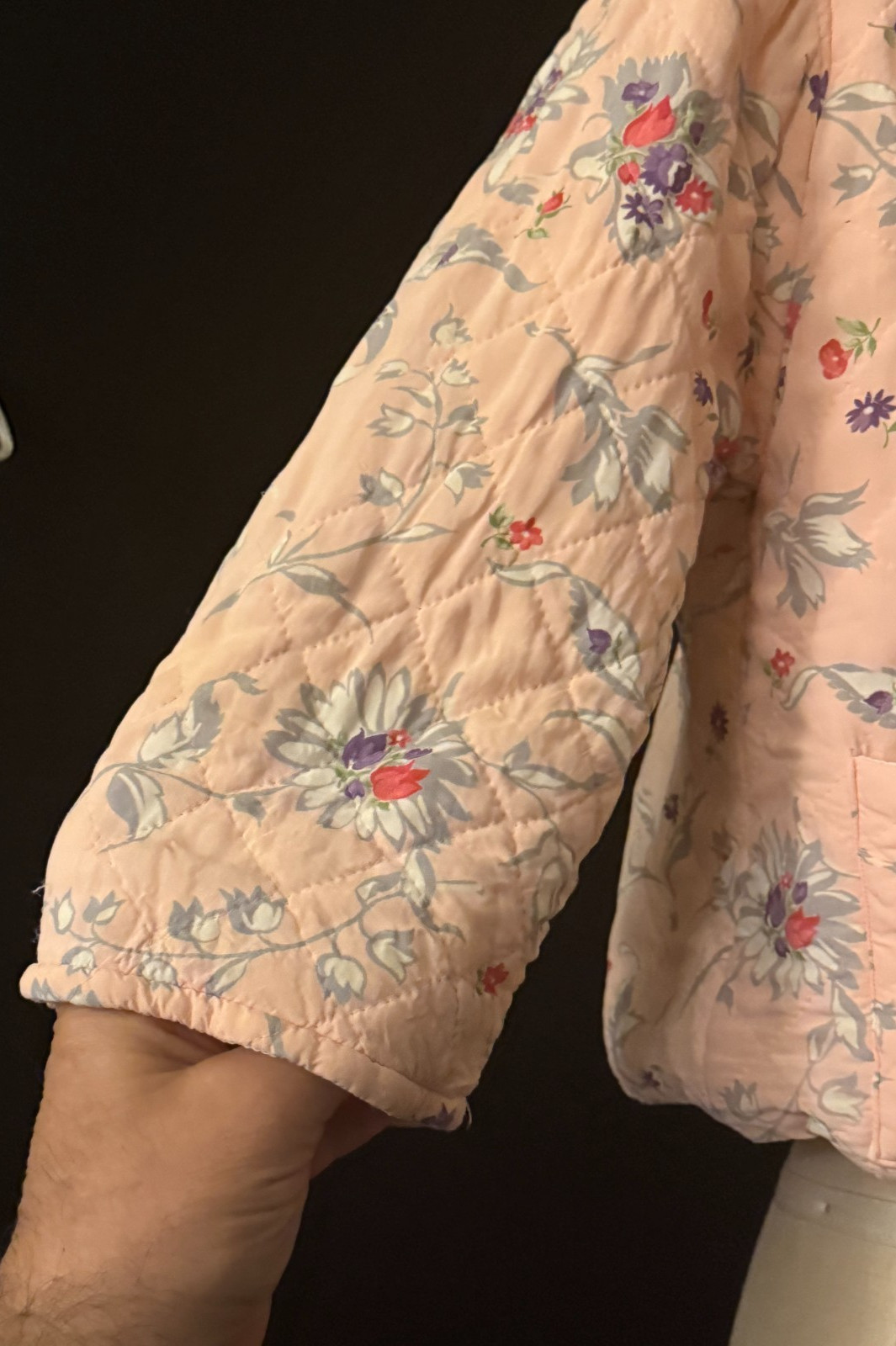 как выглядит Vtg 1940s /50s QUILTED RAYON, BED JACKET, ALL OVER FLORAL PRINT, CUTE фото