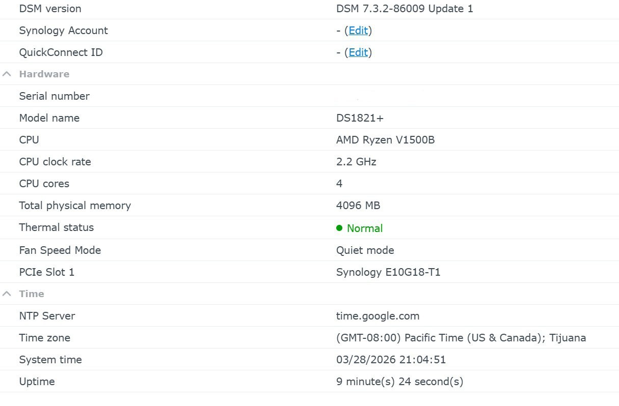 Synology DiskStation DS1821 8-Bay NAS Enclosure 10GbE - Diskless - Tested