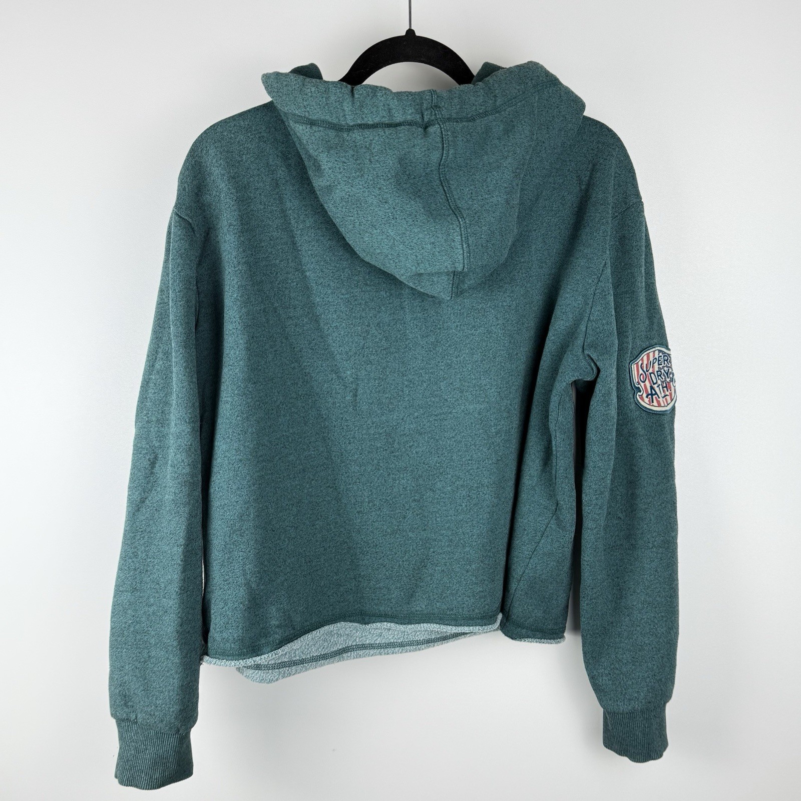 как выглядит Superdry Cropped Hoodie UK14 US10 Oversized Green Velvet Logo US Flag Japan фото
