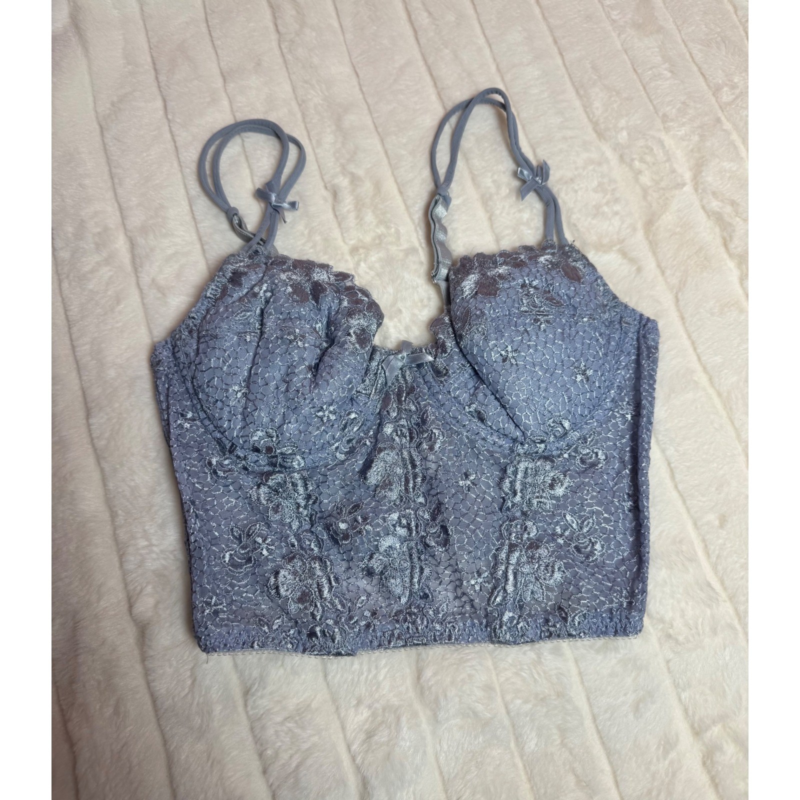 как выглядит Vintage 90s Victorias Secret Bustier Top Womens 34B Blue Good Lace Floral Bows фото