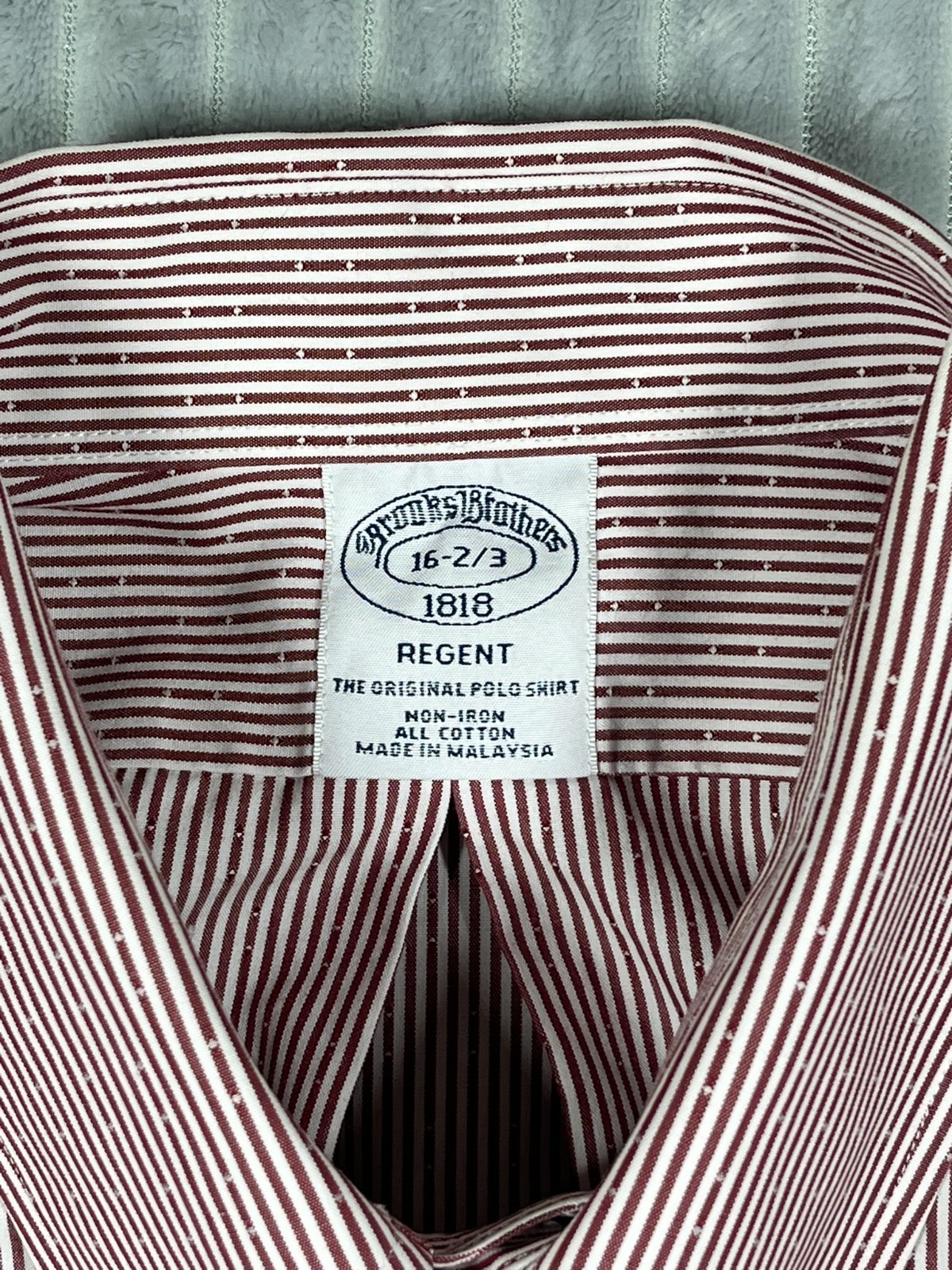как выглядит Brooks Brothers Regent Original Polo Dress Shirt Non-Iron Mens 16 2/3 Striped фото
