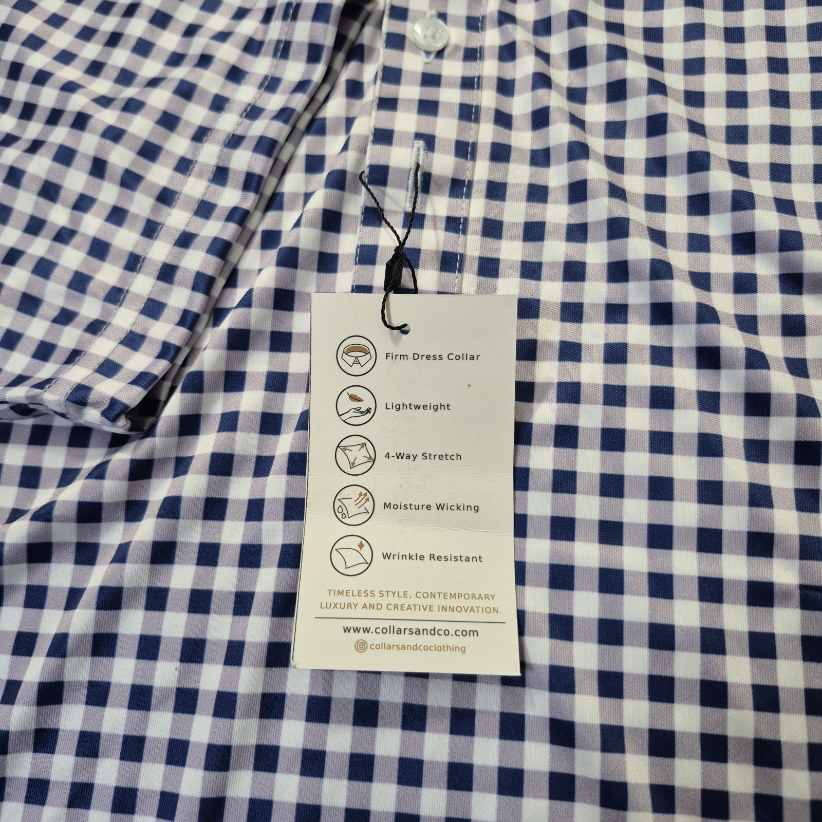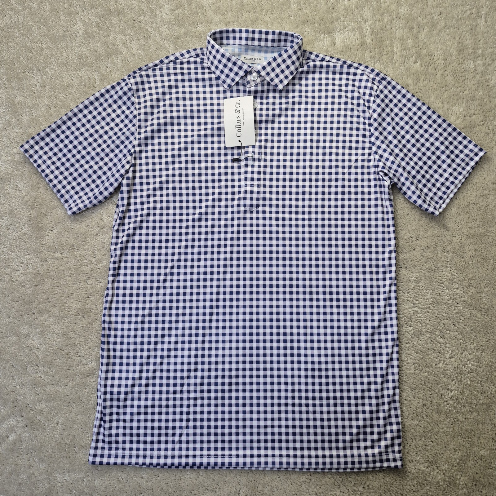 Collars and Co Dress Collar Polo Shirt Mens Large Purple Check Performance Golf