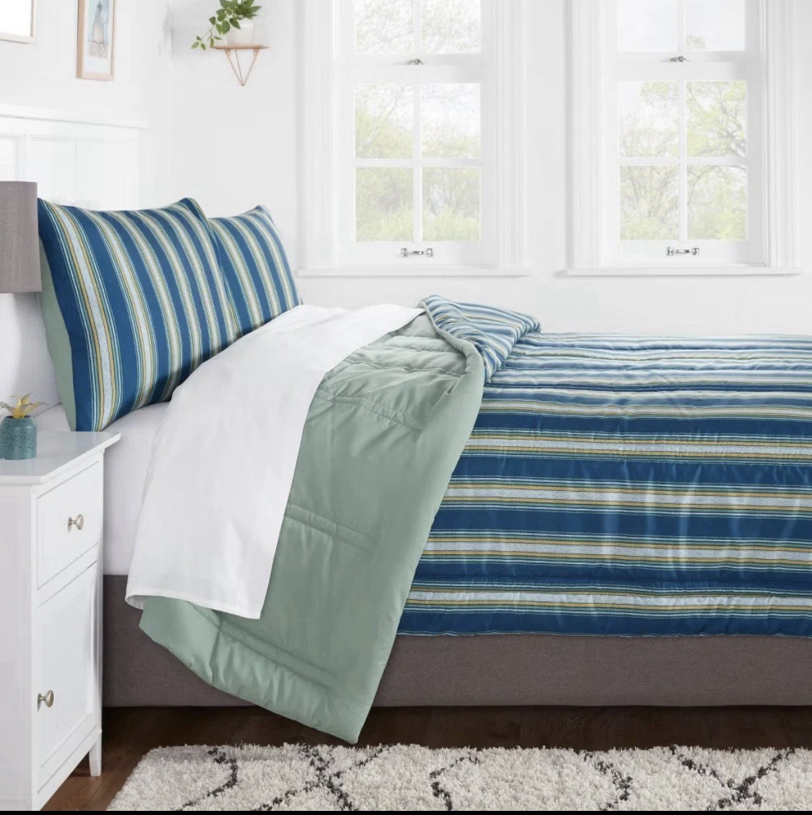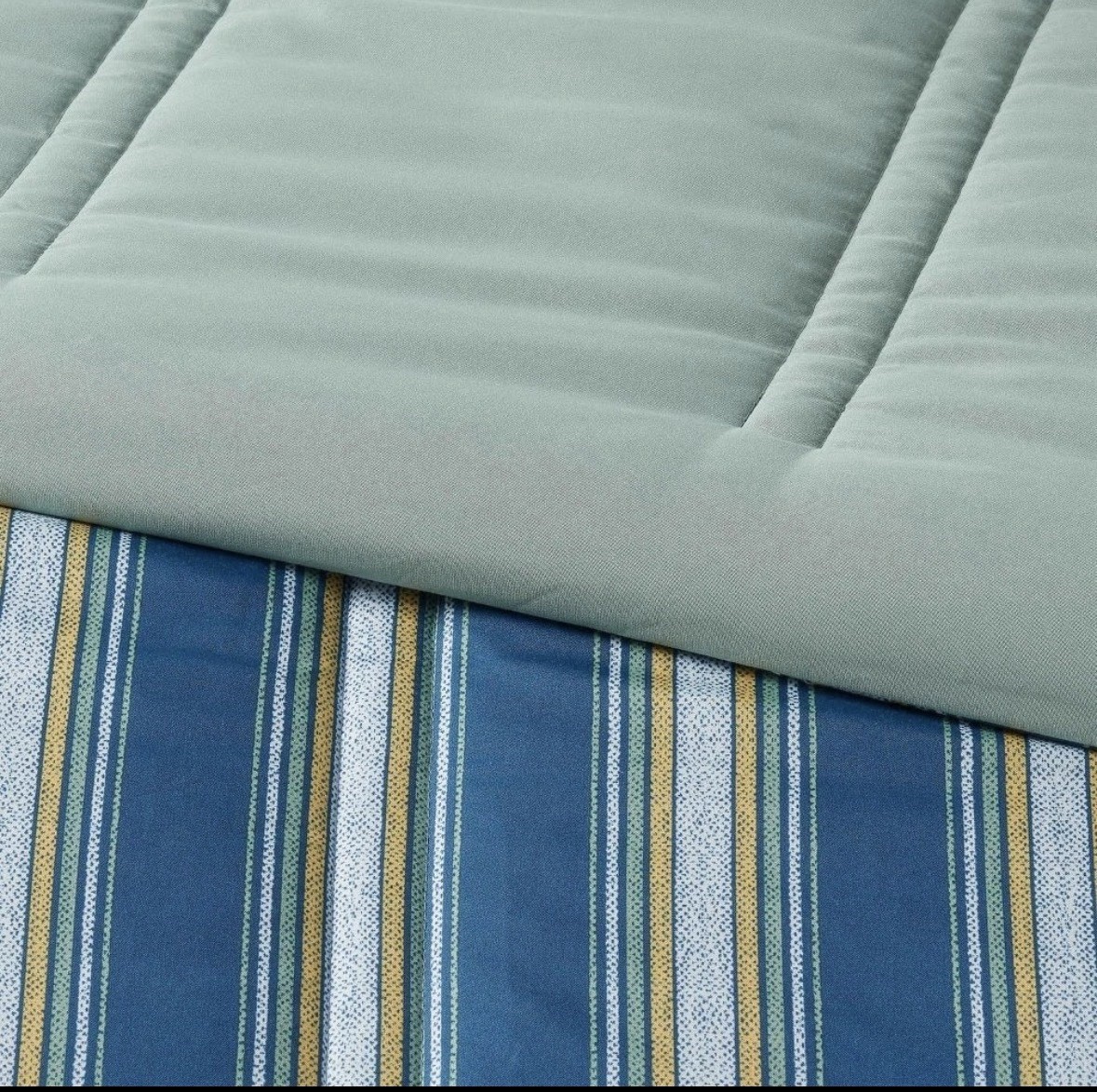 как выглядит Full/Queen Lofty Microfiber Comforter Navy Striped - Room Essentials: NWT фото
