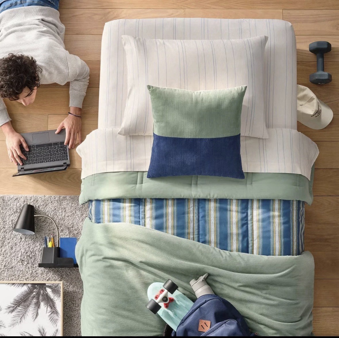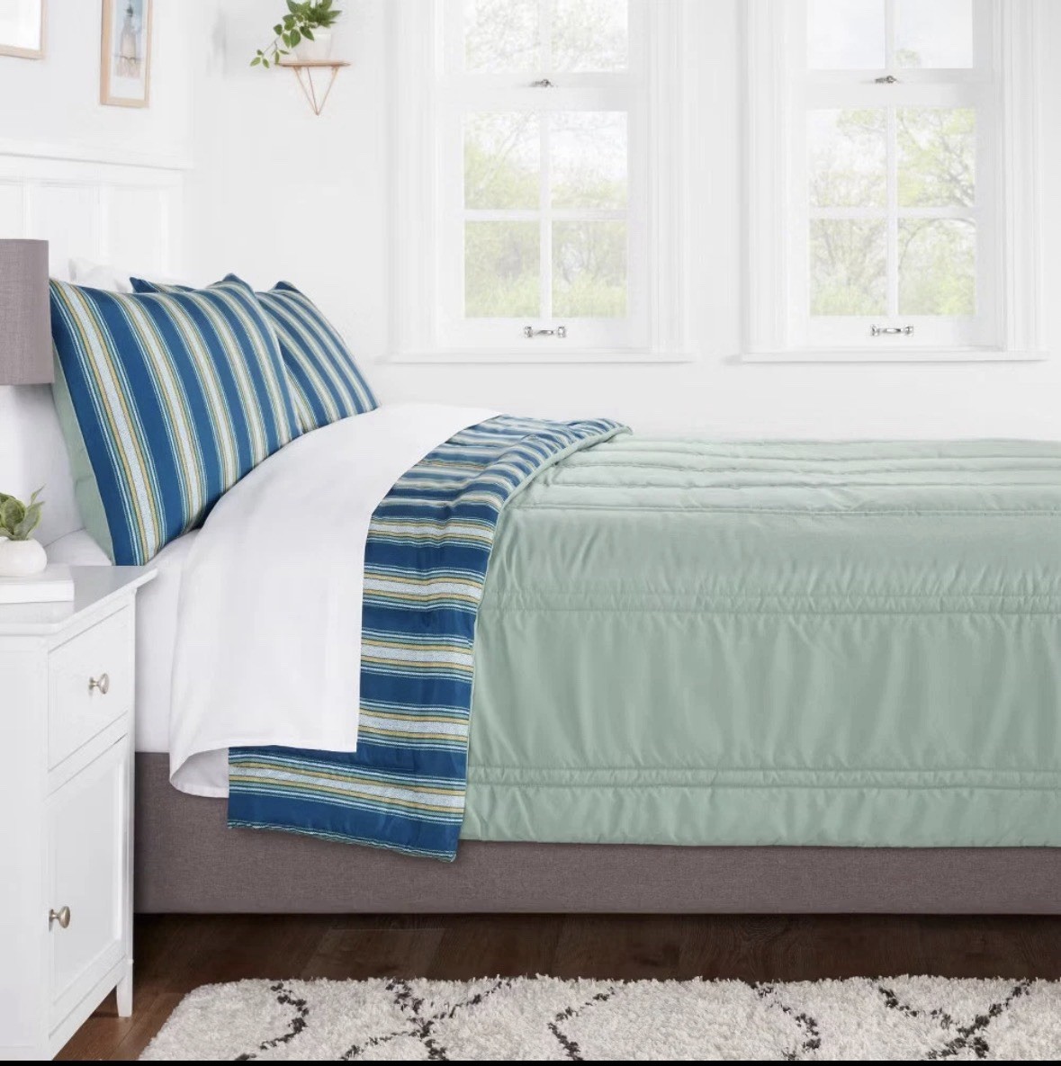 Full/Queen Lofty Microfiber Comforter Navy Striped - Room Essentials: NWT