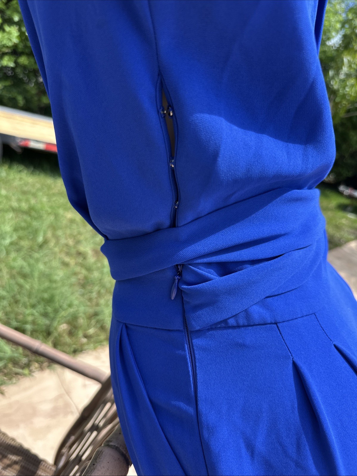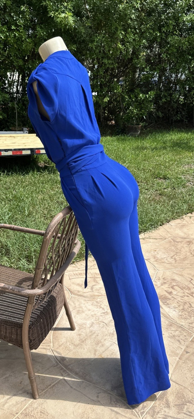 как выглядит Diane von Furstenberg Purdy Blue Sleeveless Faux Wrap Jumpsuit Sz 0 фото