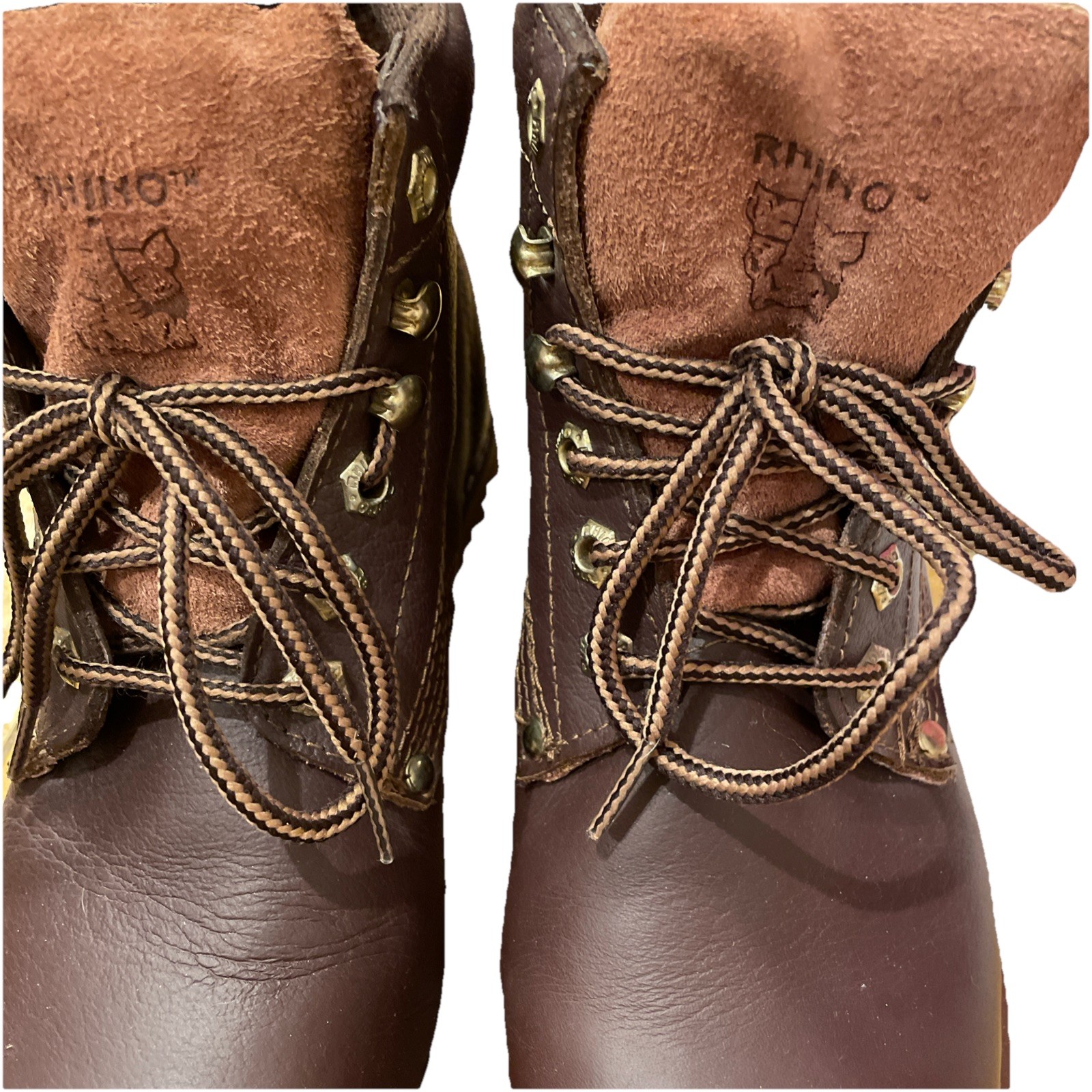 как выглядит Mens Rhino 61M28 Brown Leather 6" Soft Toe Plain Toe Lace Up Work Boots Sz 8 фото