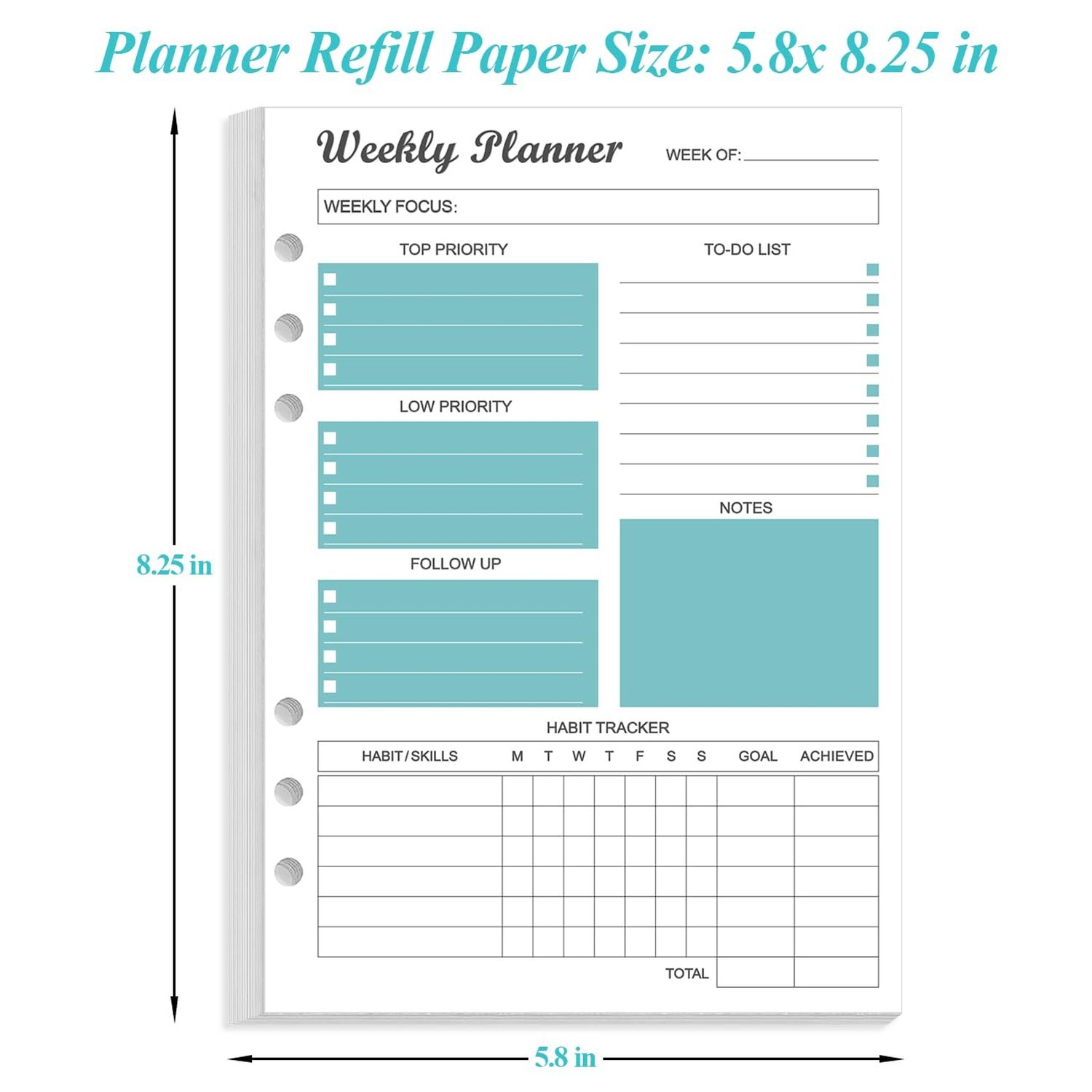 6-Hole Weekly Planner Refills for A5 Binders - 53 Sheets/106 Pages Undated We...