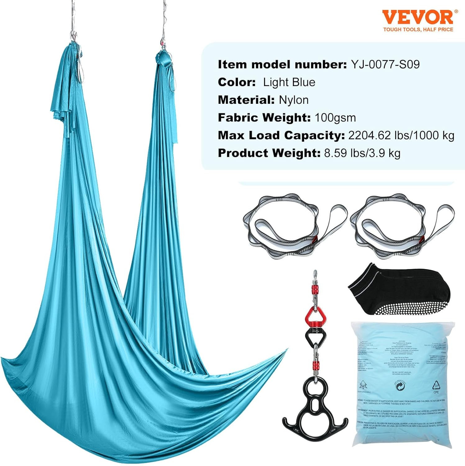 Included Components: 1 x Aerial Yoga Swing, 1 x Aluminum Swivel Joint, 1 x Figure-8 Jo