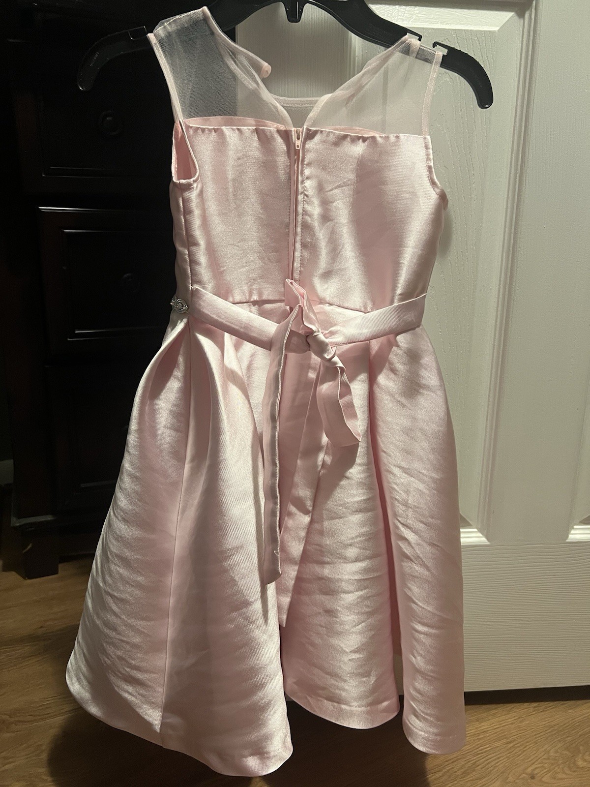 как выглядит Girls Pink Formal Flower Girl Dress Sheer Neckline Bow Sleeveless фото