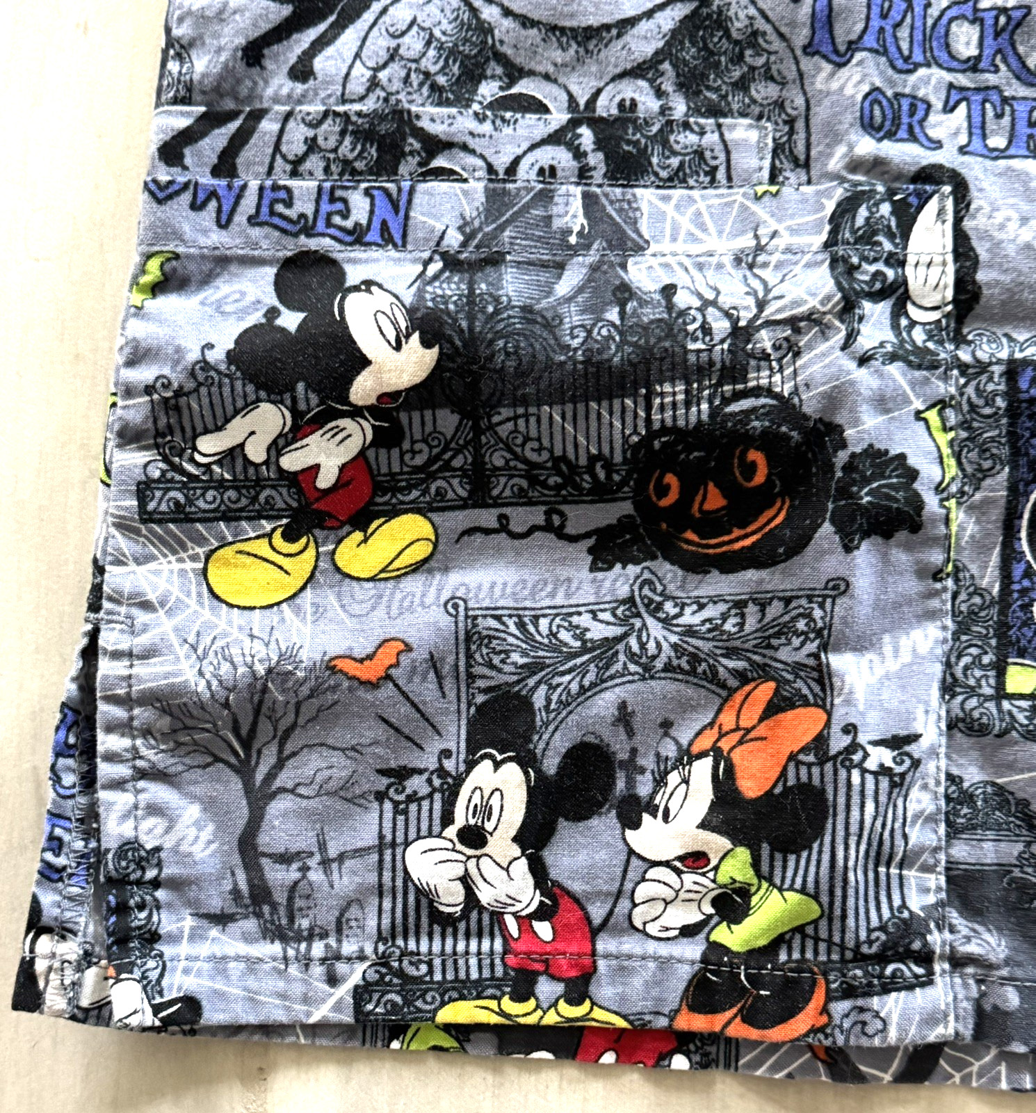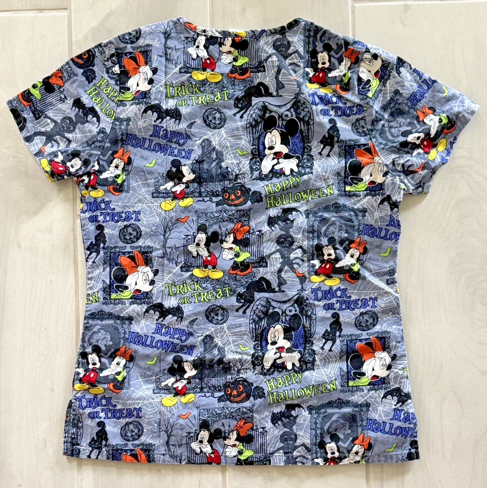 Disney Scrub Top Womens XS Mickey Minnie Mouse Halloween Trick Or Treat