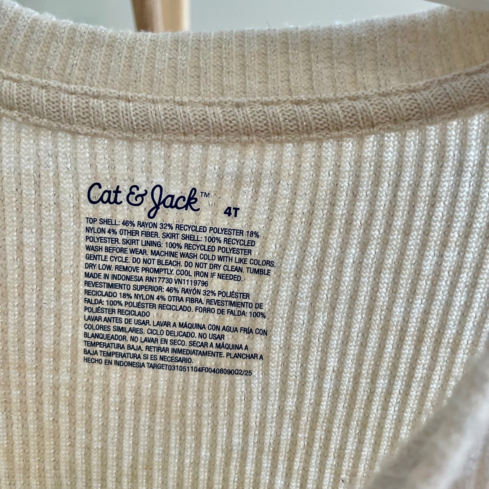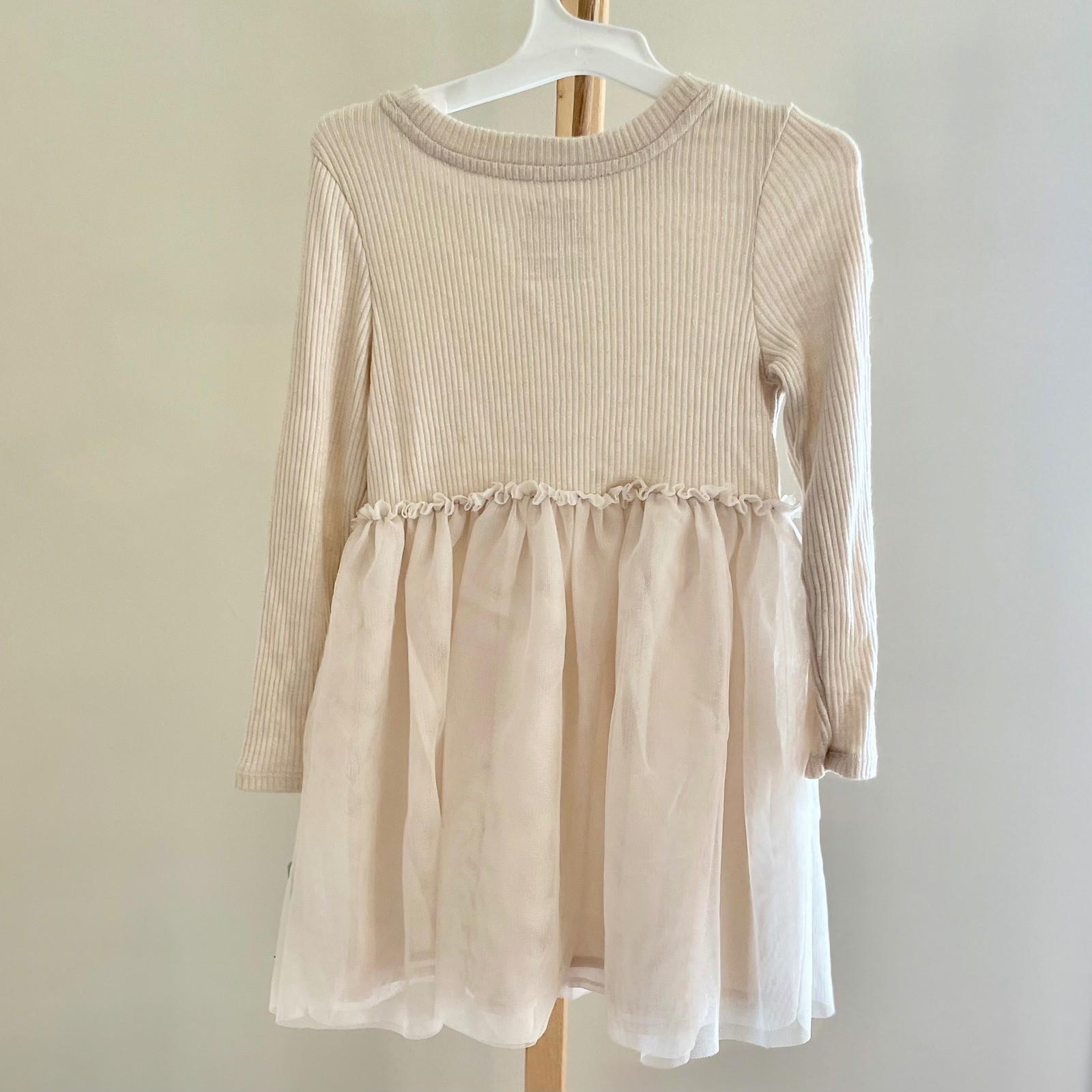 Cat Jack Girls Cream Ribbed Tulle Long Sleeve Tutu Dress 4T Ivory Shimmer