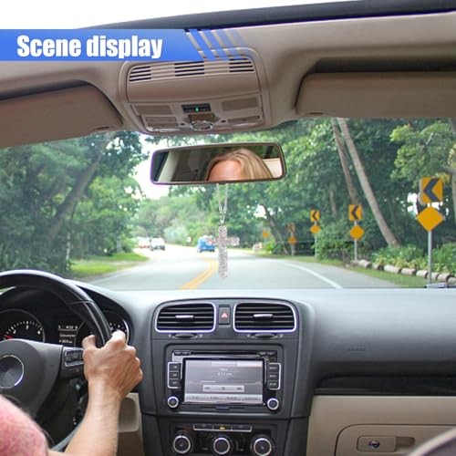 Bling Cross Car Hanging Ornament, Crystal Rhinestone Car Rearview Mirror White