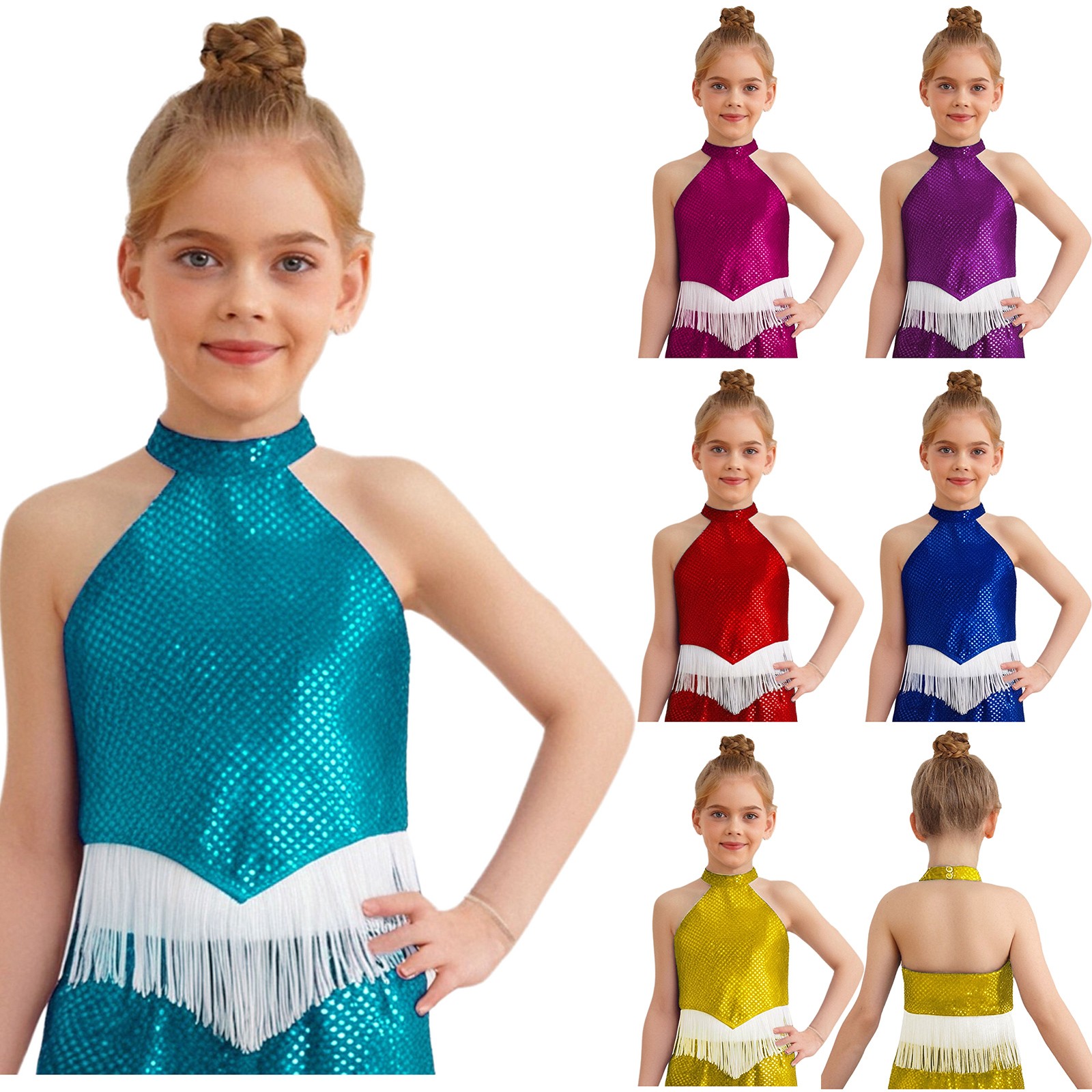 Girls Dance Top Competitions Glittery Jazz Dance Costume Sequin Crop Top Modern