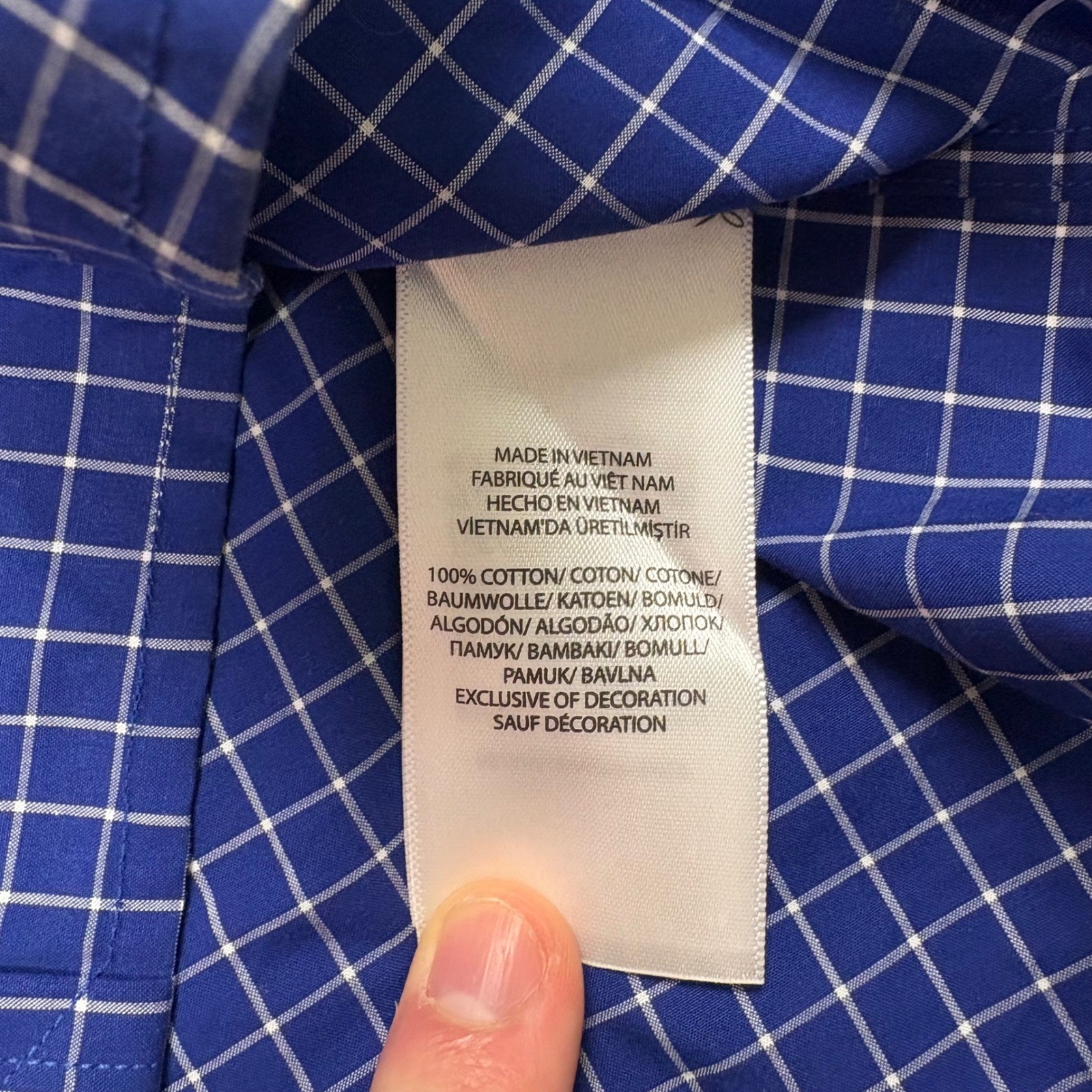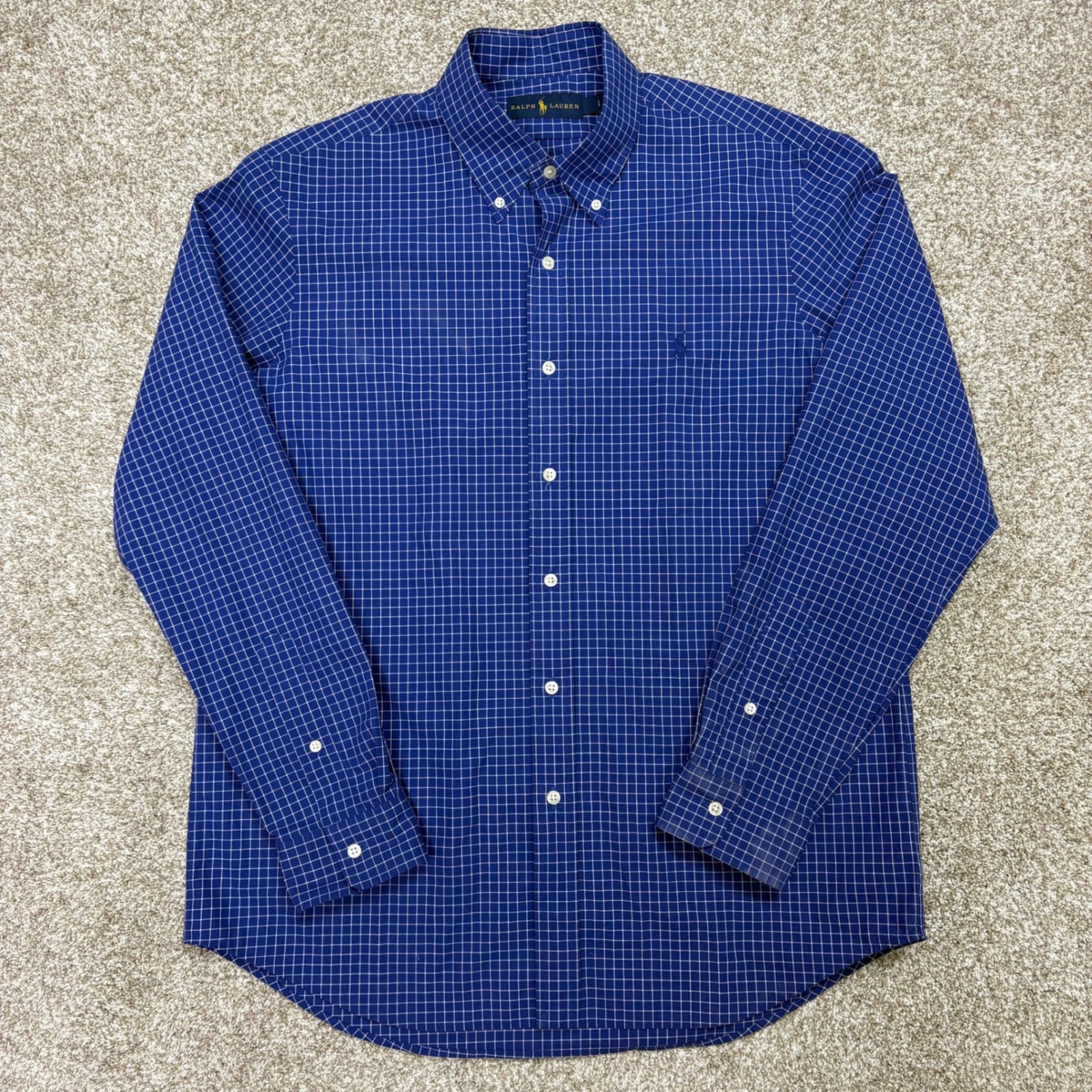 Ralph Lauren Button Down Men Large Blue White Windowpane Check Cotton Shirt