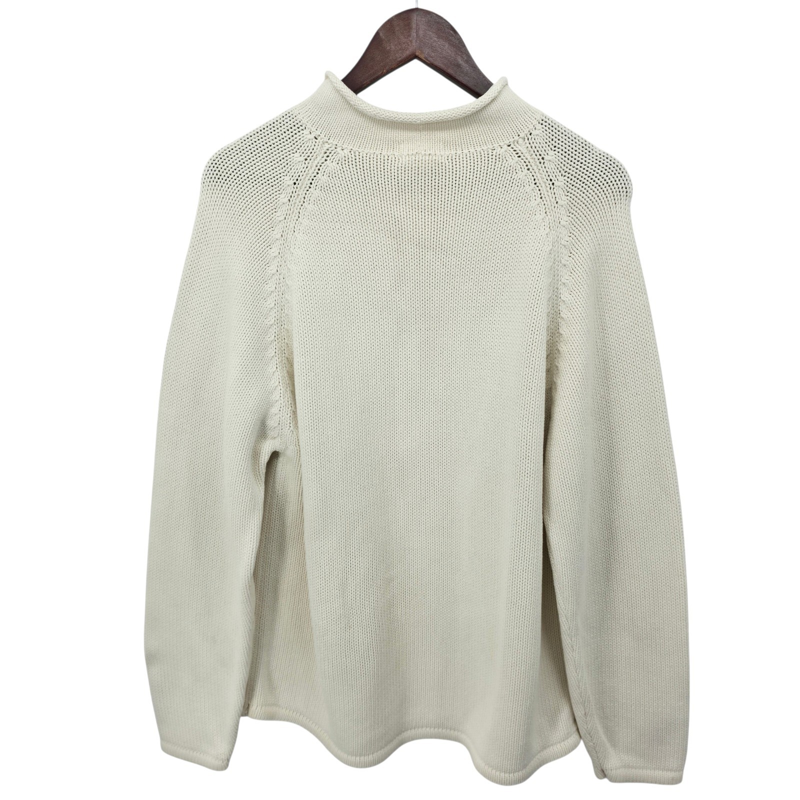 Vintage J Crew Ivory Cotton Roll Neck Sweater Oarsman 90s Minimalist Women L