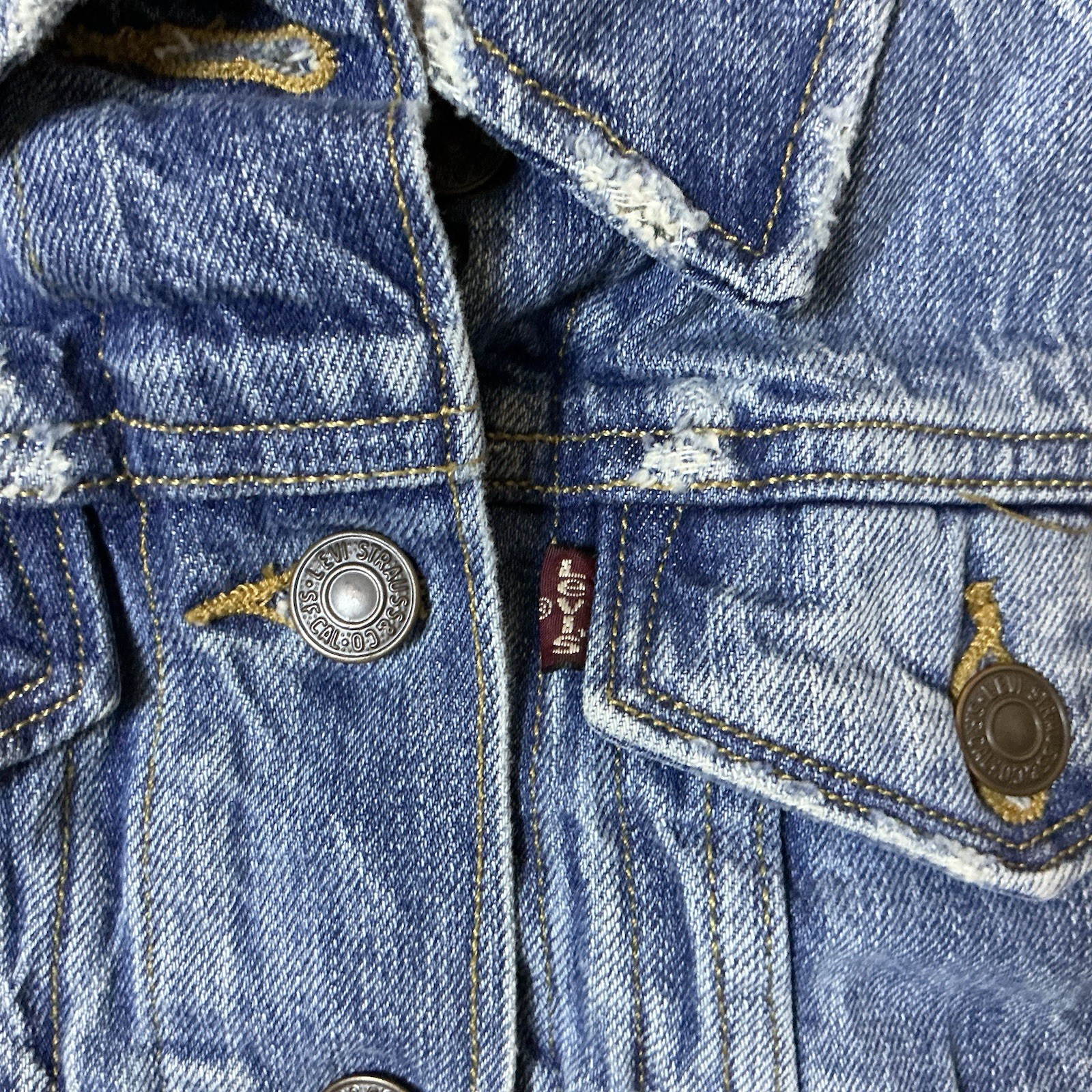 как выглядит Levis Womens Denim Vest Retro Trucker Style Red Tab Blue Small EUC фото