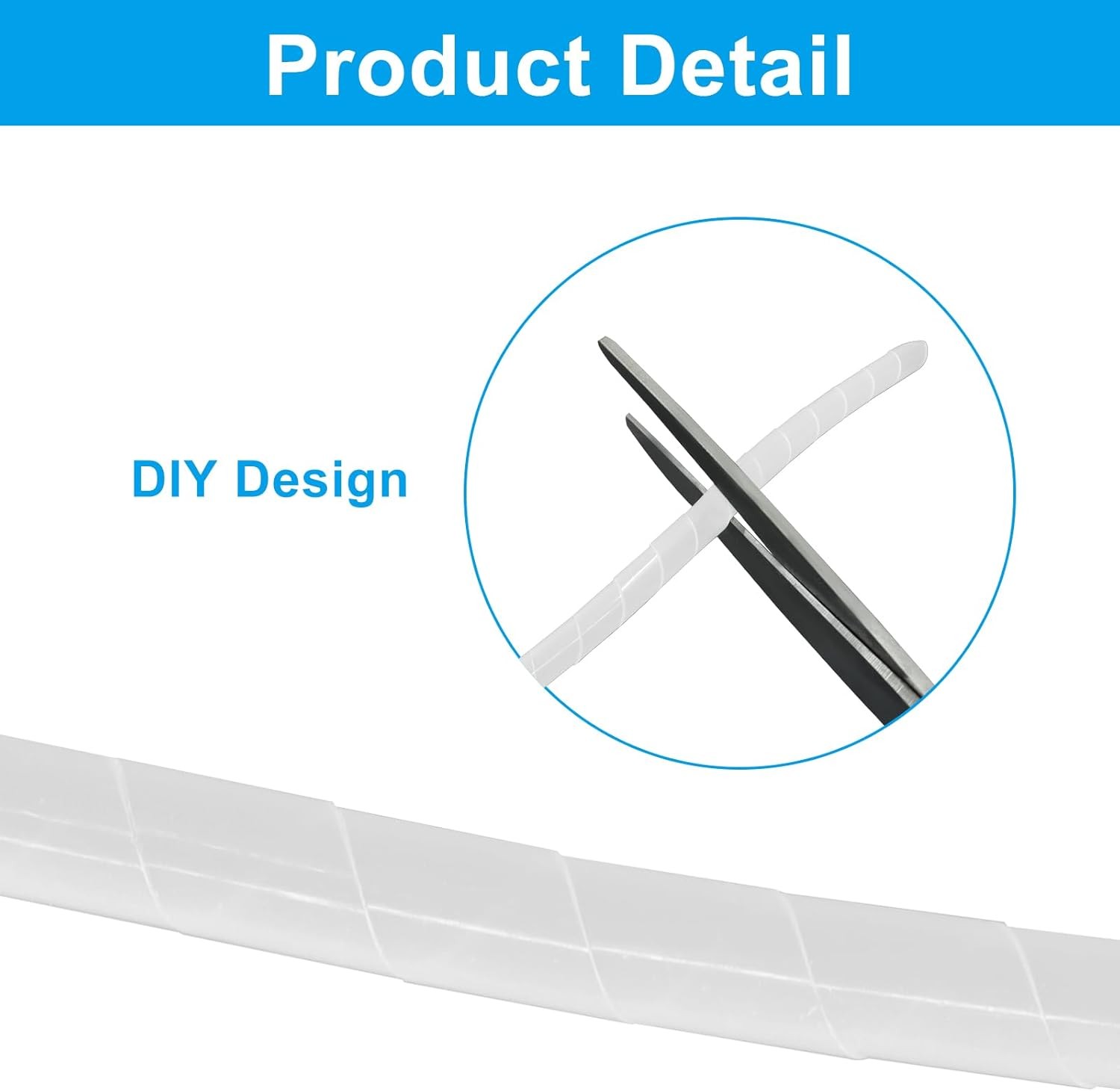1/4 Spiral Cable Wrap Power Cord Detangler, 43 Ft White Spiral Wire Wrap for De