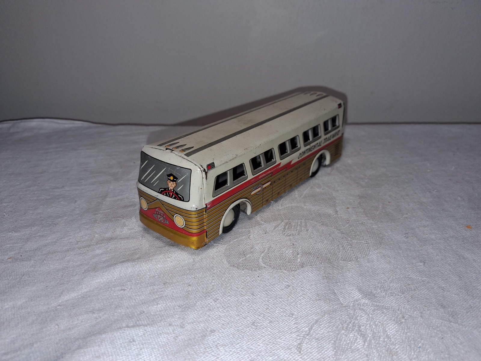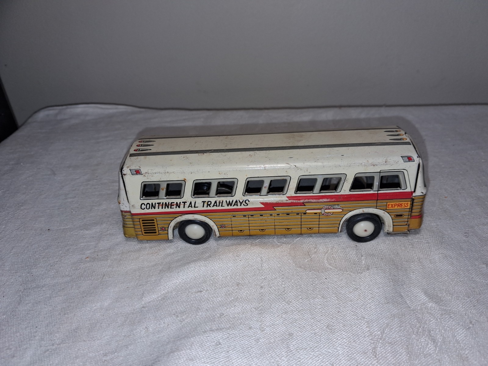 Vintage Tin Continental Trailways Silver Eagle Bus Friction Toy Japan Super Set